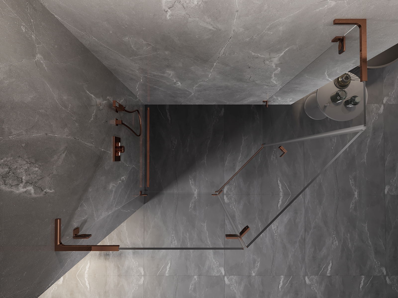 Mexen Lunar L päťuholníková sprchovacia kabína výklopná ľavá 100 x 90 cm, transparentná, ružové zlato - 831L-100L-090P-60-00-L