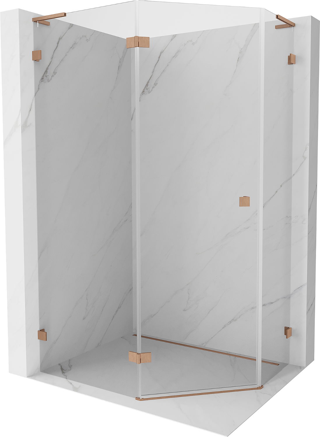Mexen Lunar L päťuholníková sprchová kabína výklopná ľavá 100 x 90 cm, transparentná, kartáčovaná meď - 831L-100L-090P-65-00-L