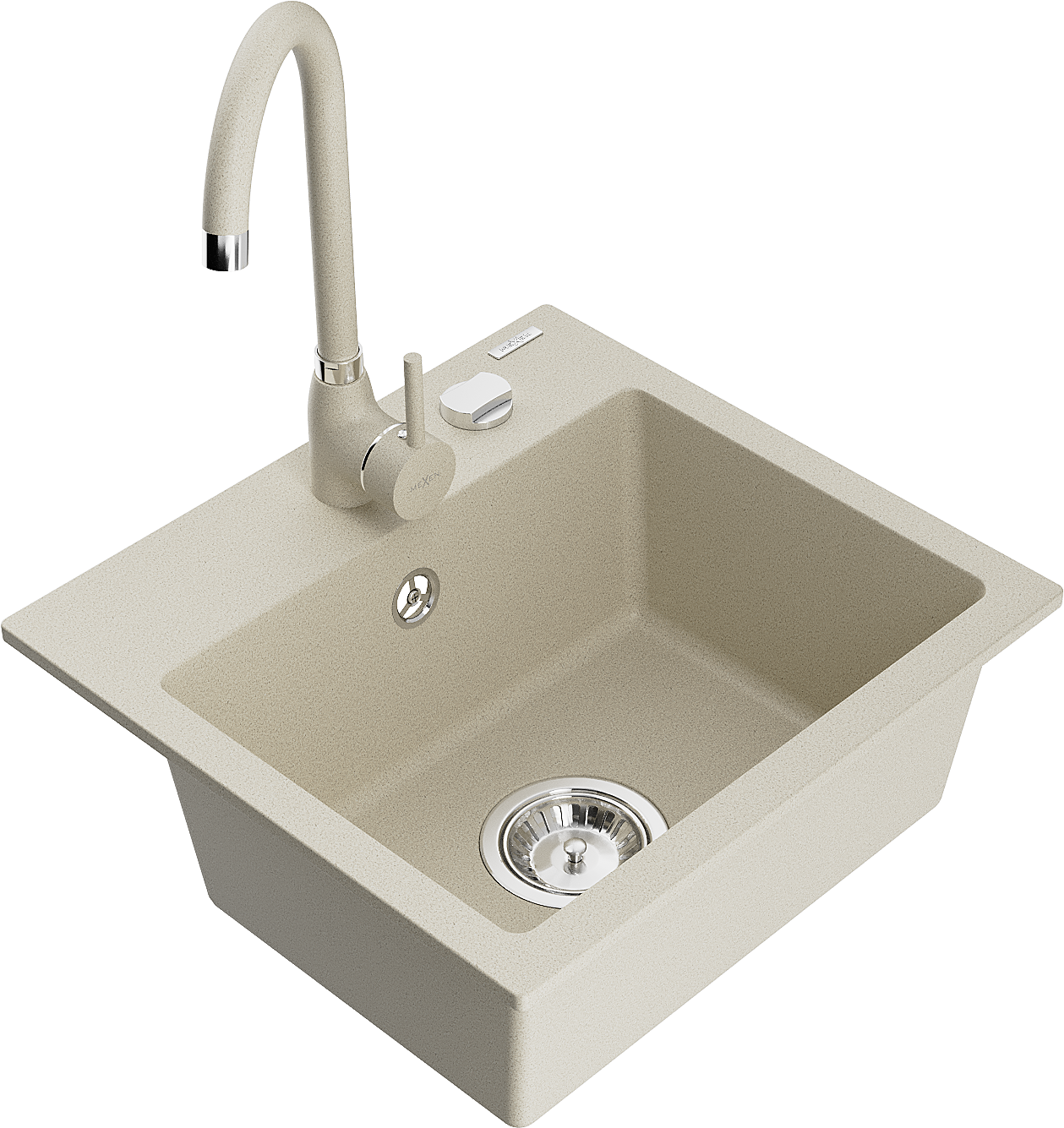 Mexen Milo žulový drez 1-komorový s kuchynskou batériou Telma, béžový - 6505-69-670200-69