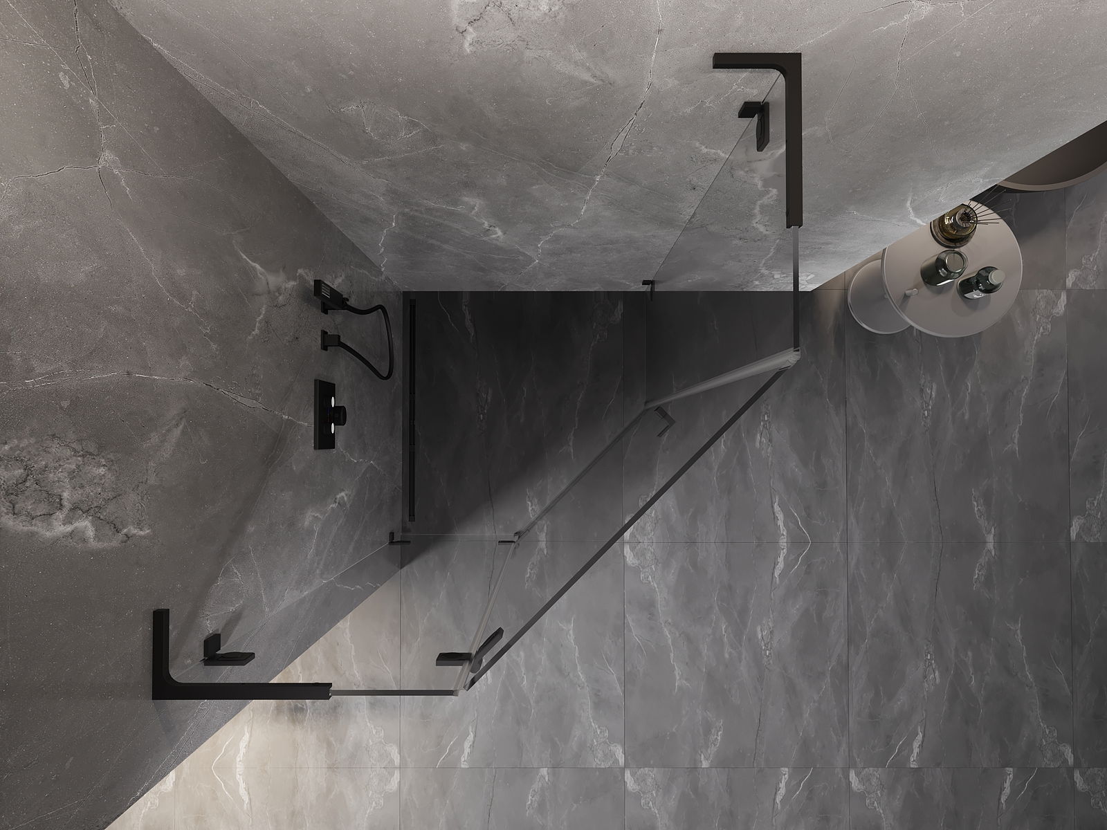 Praktická a pohodlná rukoväť je vyrobená z odolného a pevného kovu. Moderný tvar v kombinácii s povrchovou úpravou prispôsobenou farbe profilov dodáva celku moderný a štýlový vzhľad, zdôrazňujúc estetiku každej kúpeľne.