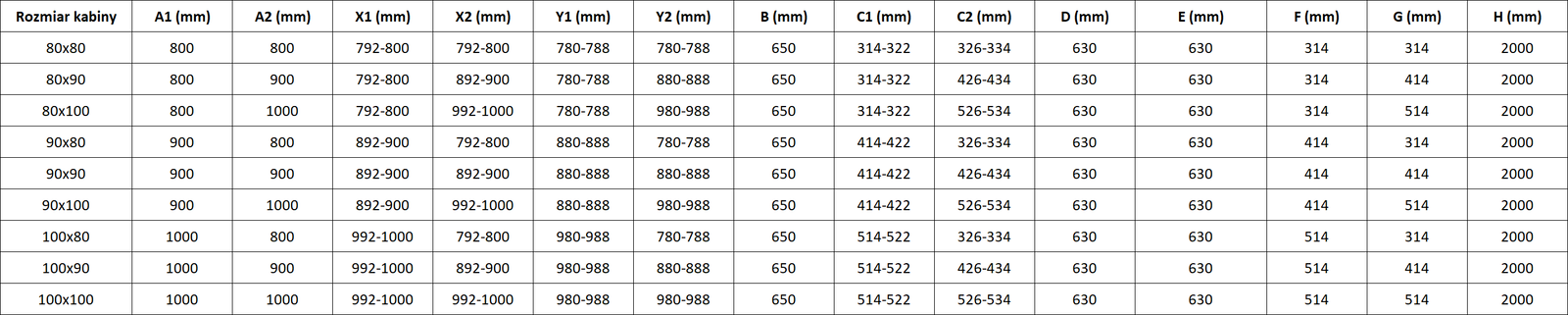Veľkosť: 80x80 cm (ľavé dvere 80 cm, stena 80 cm)