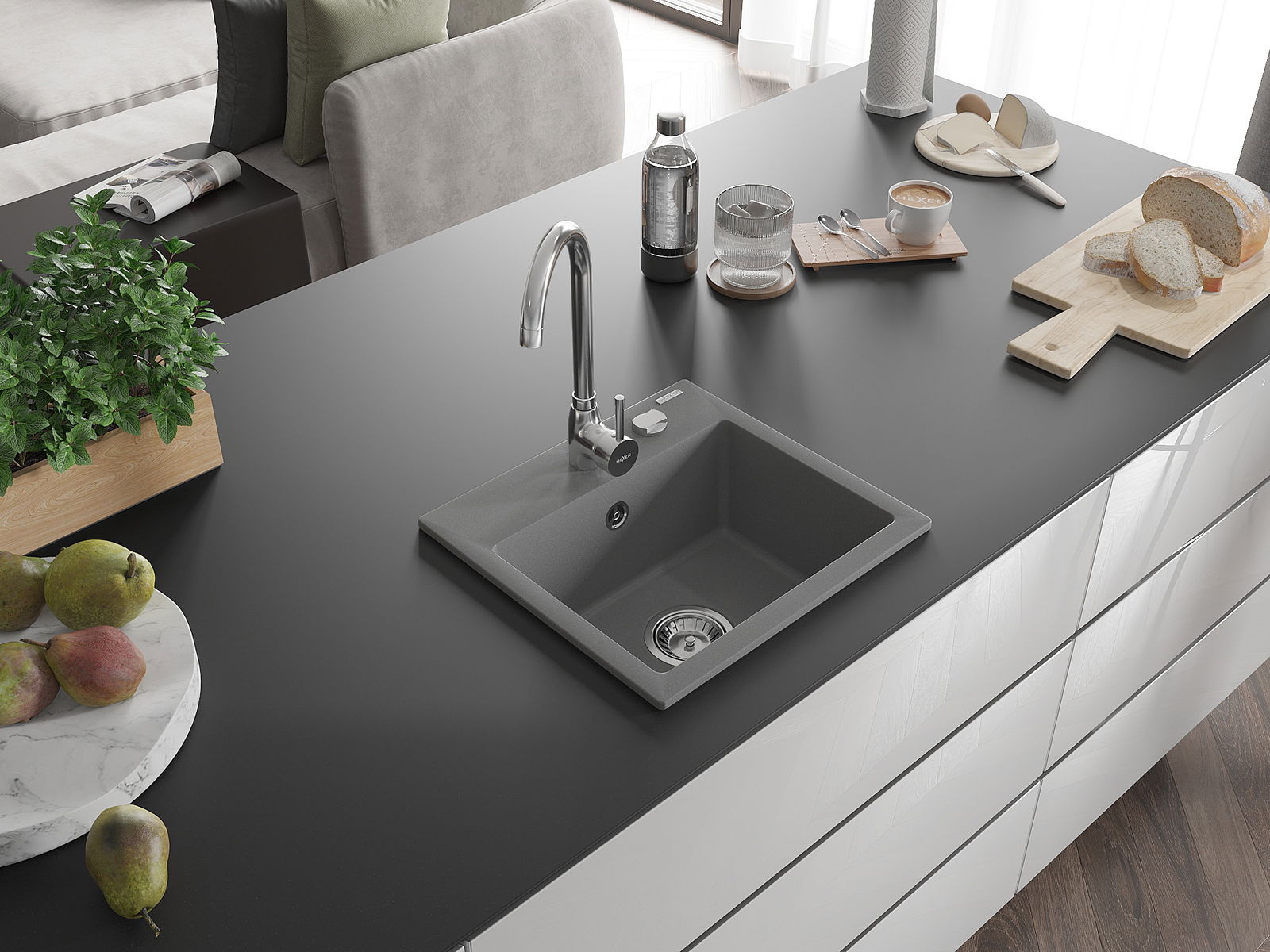 Povrch umývadla je odolný voči škvrnám a sfarbeniu, vďaka čomu sa ľahko čistí a zachováva si svoju farbu po dlhú dobu. Estetický a prakticky dopĺňajúci každú kuchyňu.