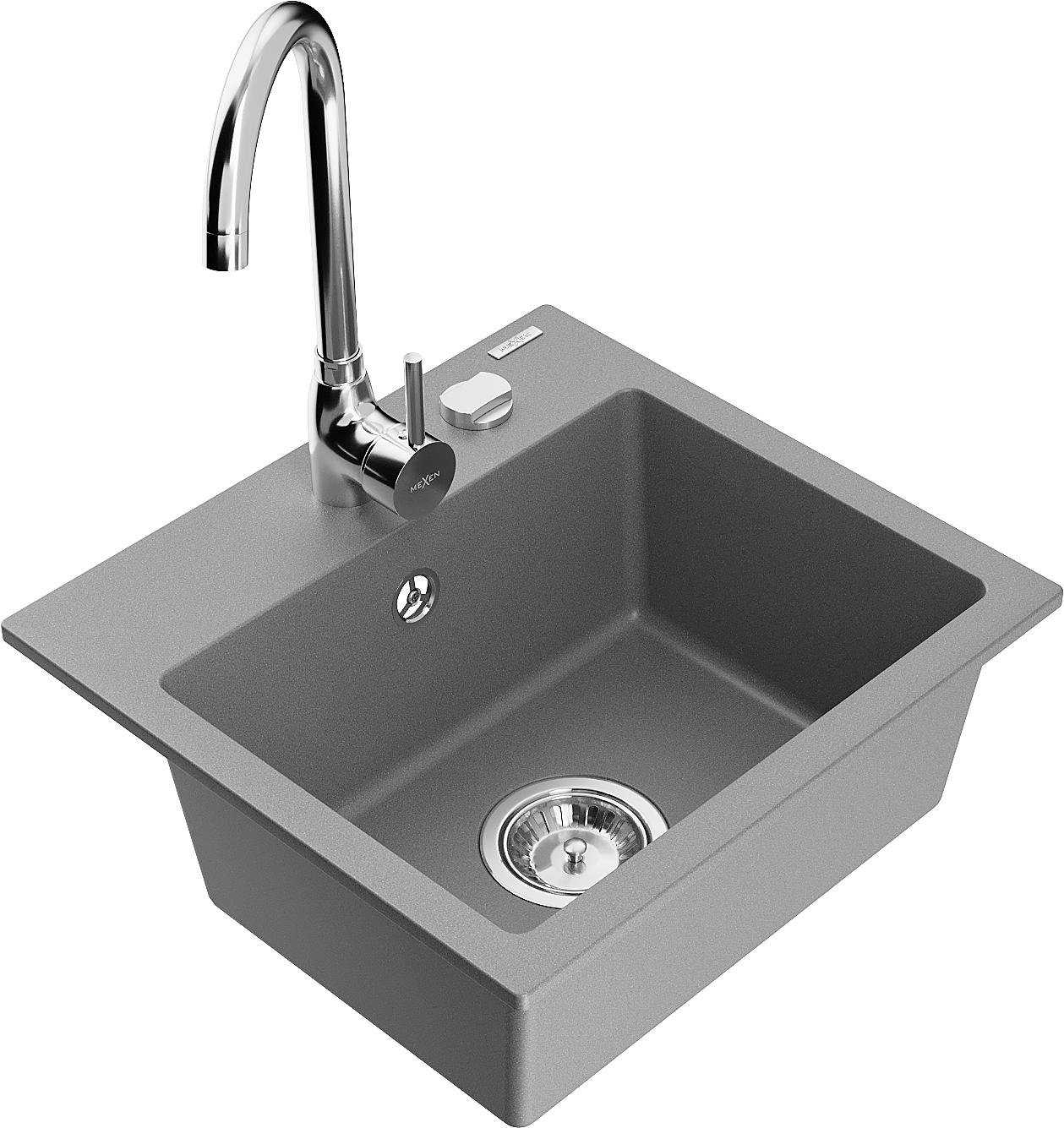 Mexen Milo žulový drez 1-komorový s kuchynskou batériou Telma, sivý - 6505-71-670200-00