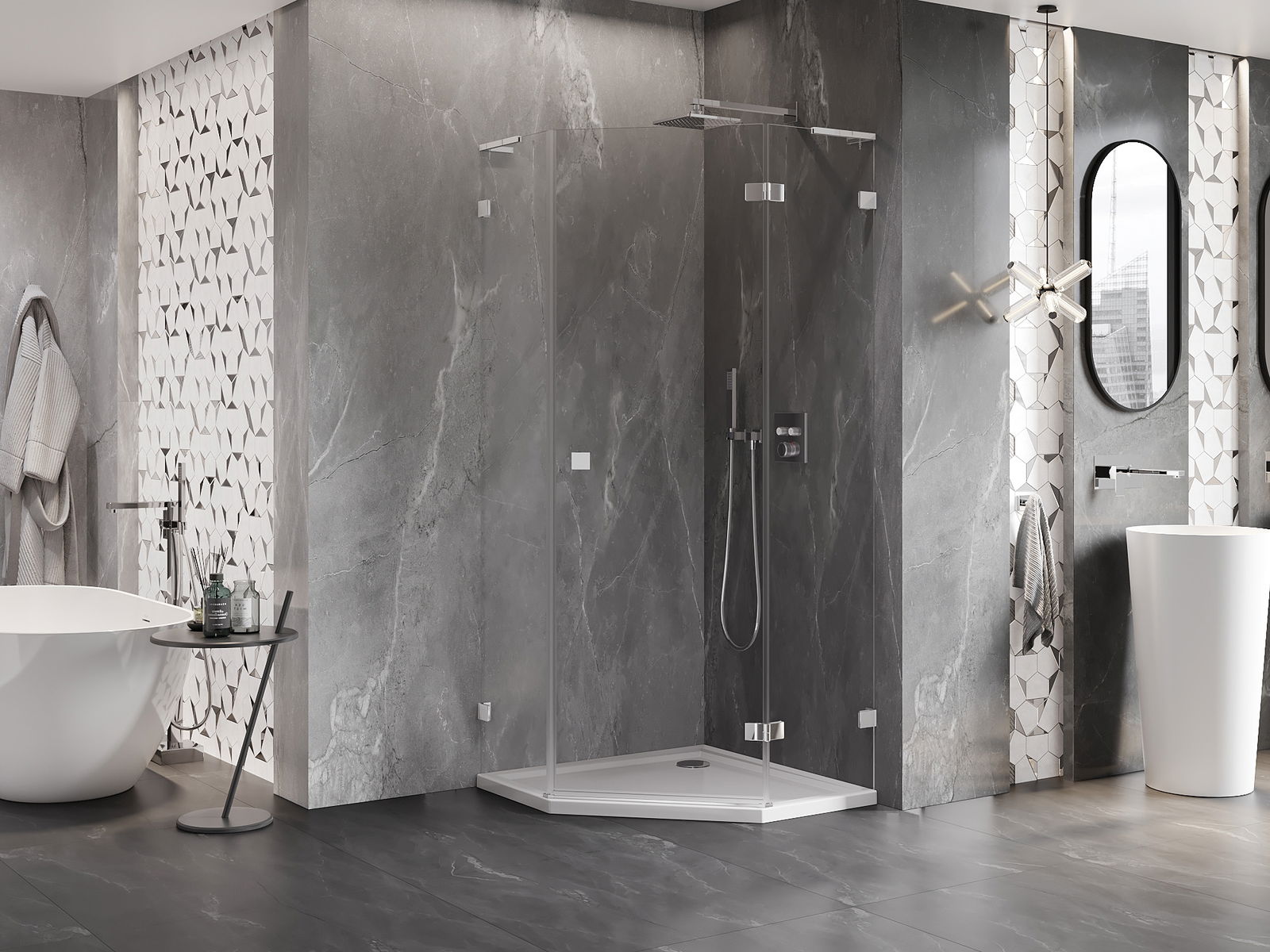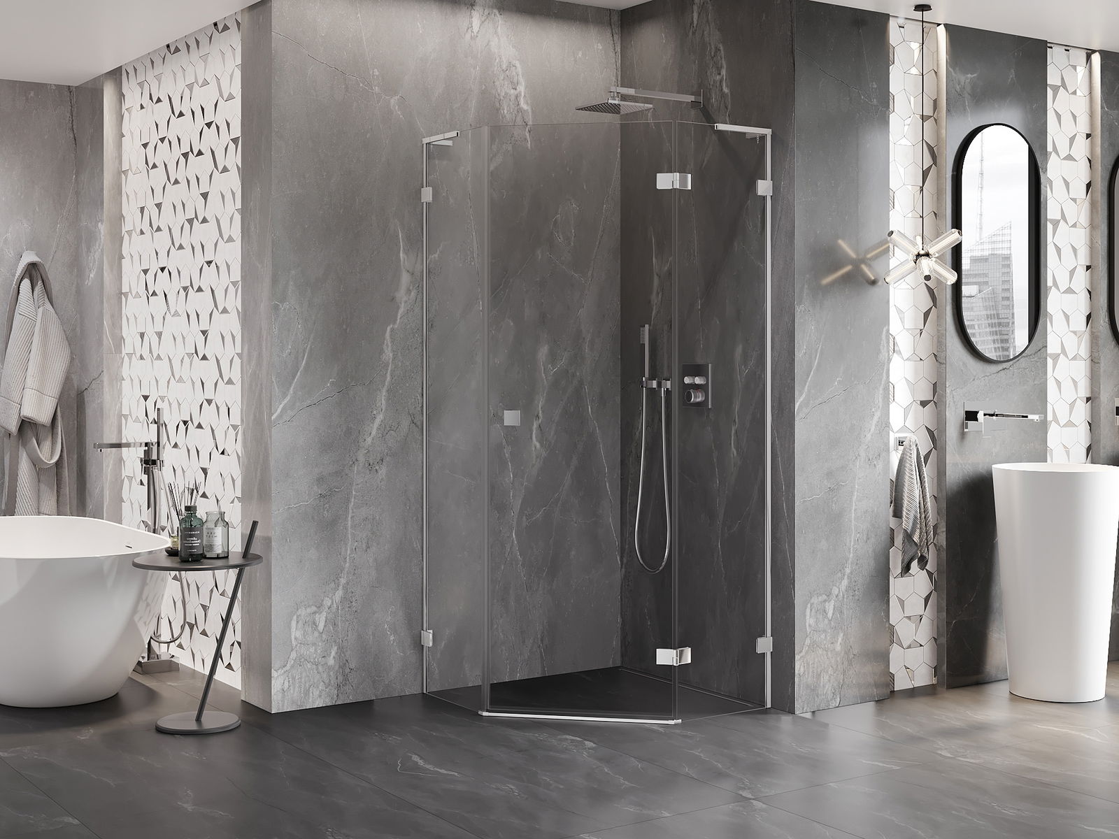 Mexen Lunar L Päťuholníková sprchová kabína výklopná pravá 100 x 100 cm, transparentná, chróm - 831L-100P-100L-01-00-P