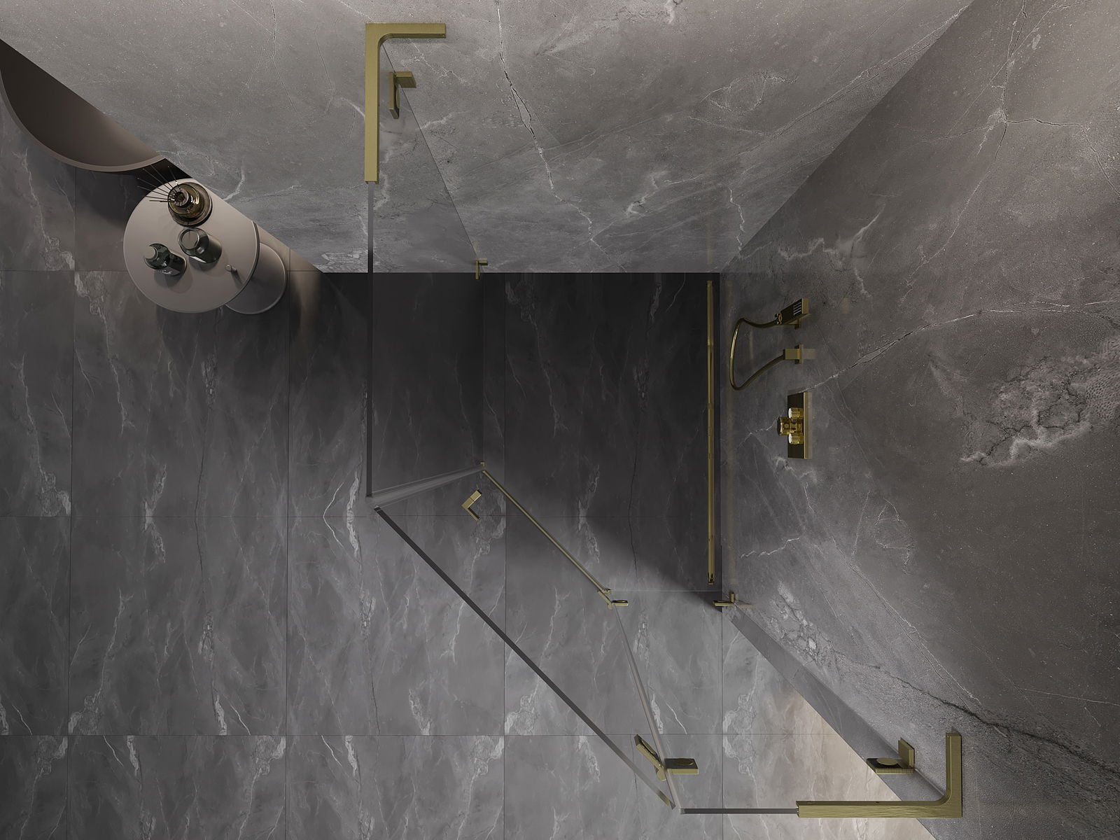 Mexen Lunar L, päťuholníková sprchová kabína pravá 80 x 100 cm, transparentná, zlatá brúsená - 831L-080P-100L-55-00-P