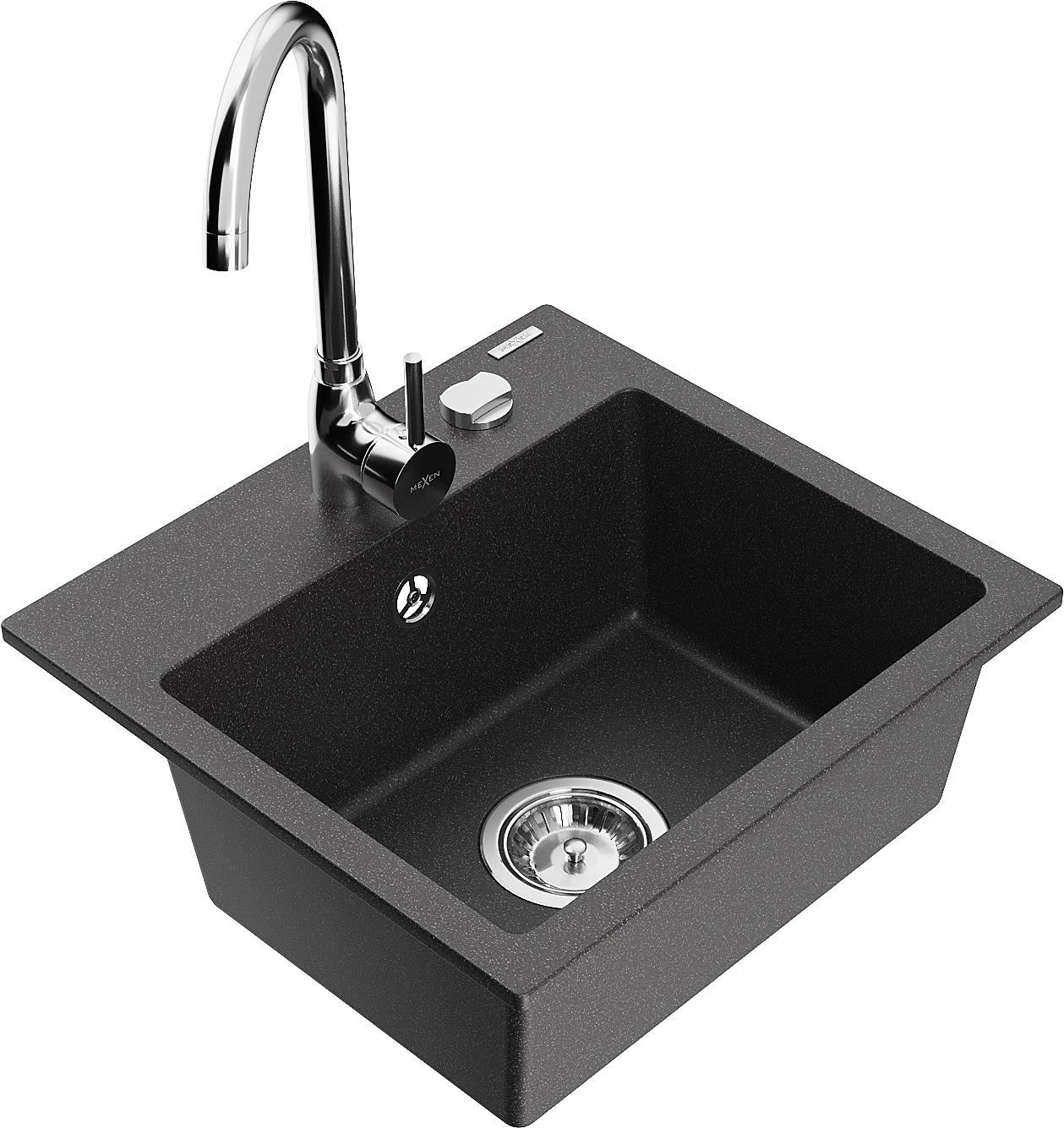 Mexen Milo kuchynský granitový drez 1-komorový s kuchynskou batériou Telma, čierny škvrnitý - 6505-76-670200-00