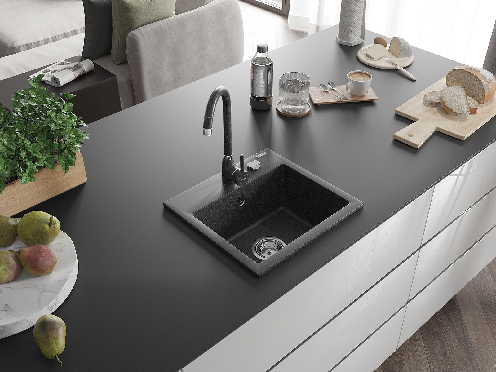 Povrch umývadla je odolný voči škvrnám a sfarbeniu, vďaka čomu sa ľahko čistí a zachováva si svoju farbu po dlhú dobu. Estetický a prakticky dopĺňajúci každú kuchyňu.