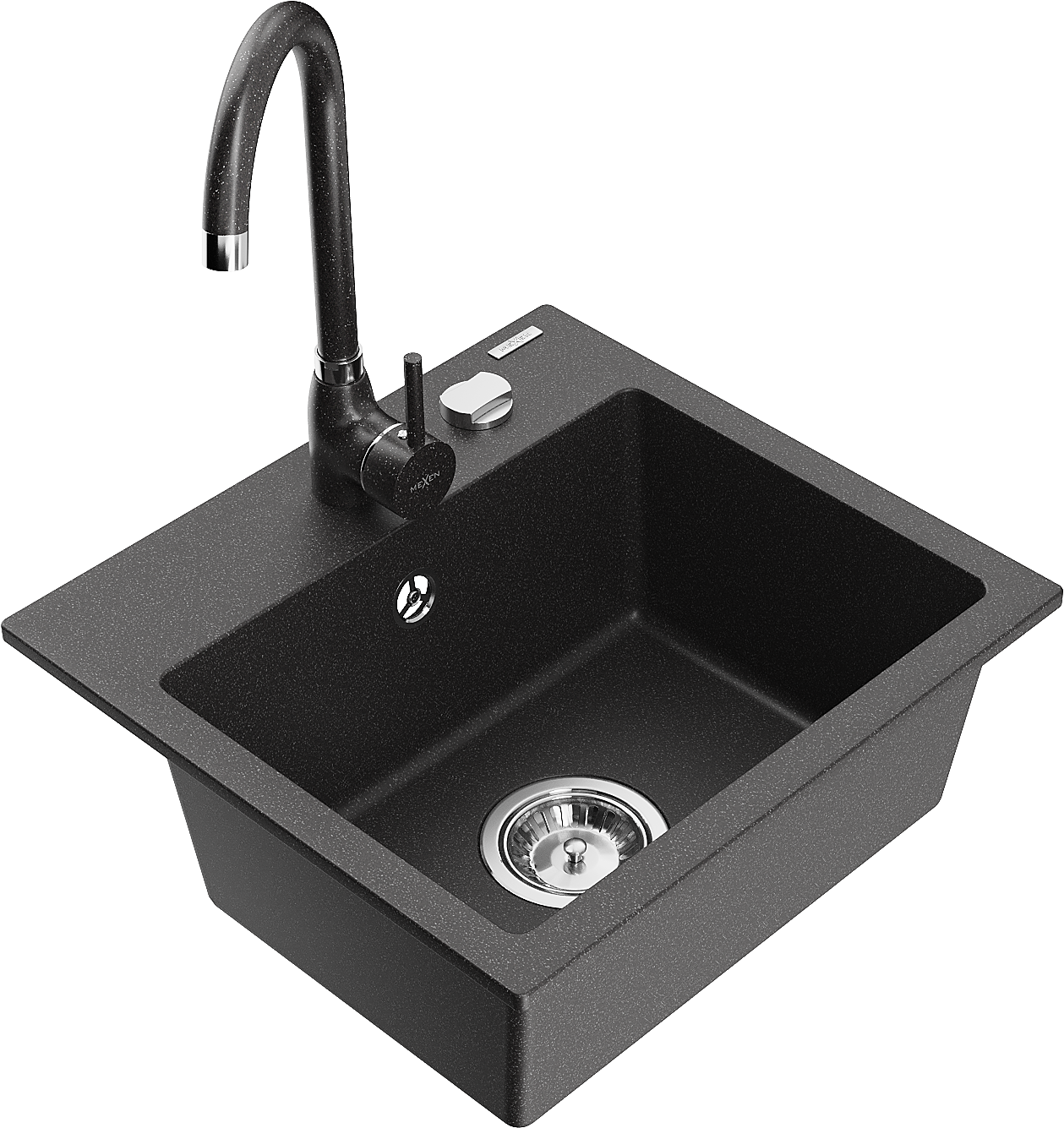 Mexen Milo žulový kuchynský drez s 1 komorou a kuchynská batéria Telma, čierna s bodkami - 6505-76-670200-76