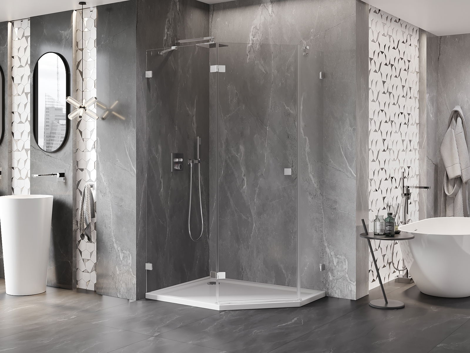 Mexen Lunar päťuholníková sprchová kabína s otváracími dverami vľavo 90 x 80 cm, priehľadná, chróm - 831-090L-080P-01-00-L