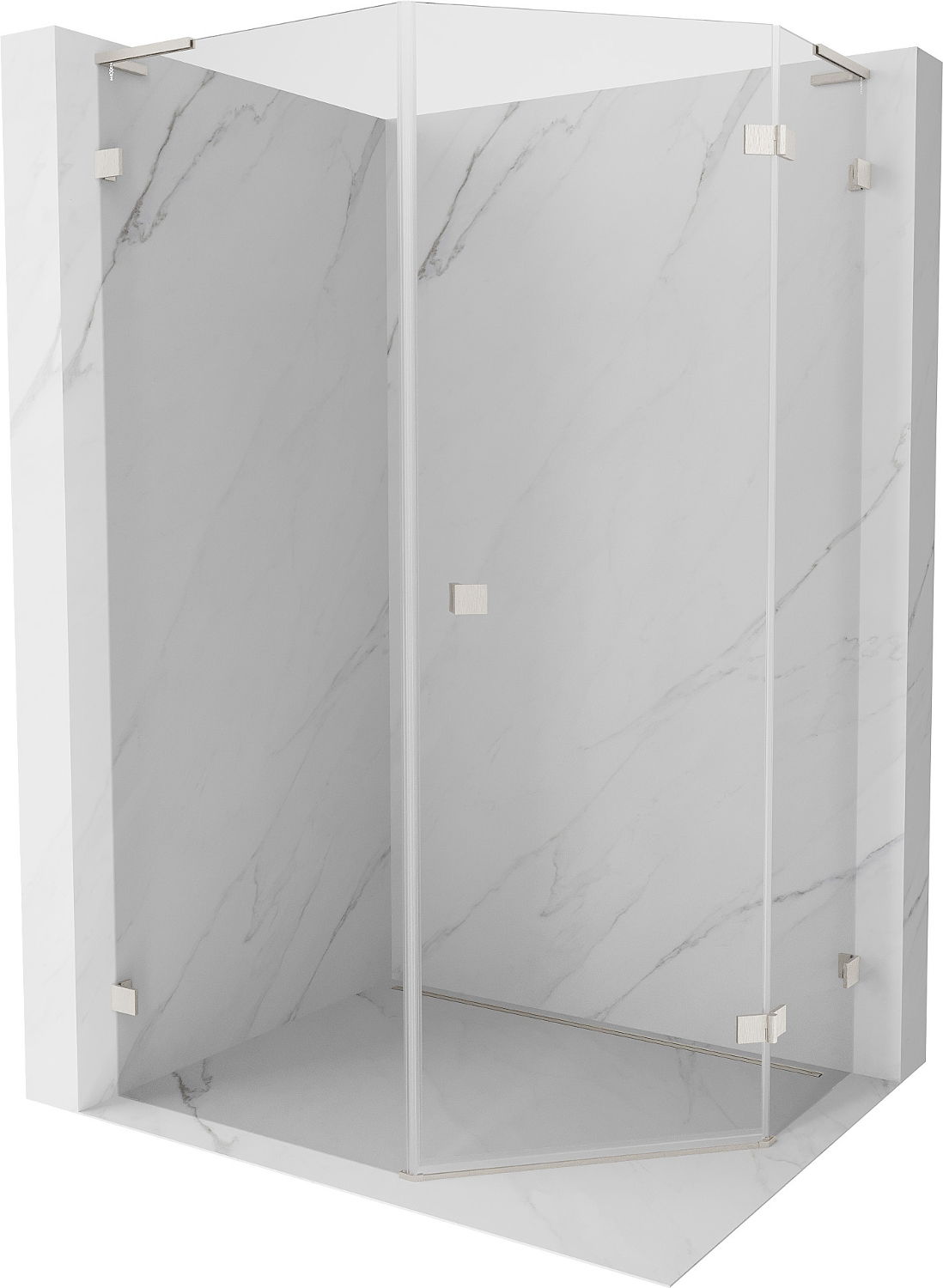 Mexen Lunar L päťuholníková sprchová kabína pravá 90x100 cm, transparentná, brúsený nikel - 831L-090P-100L-97-00-P