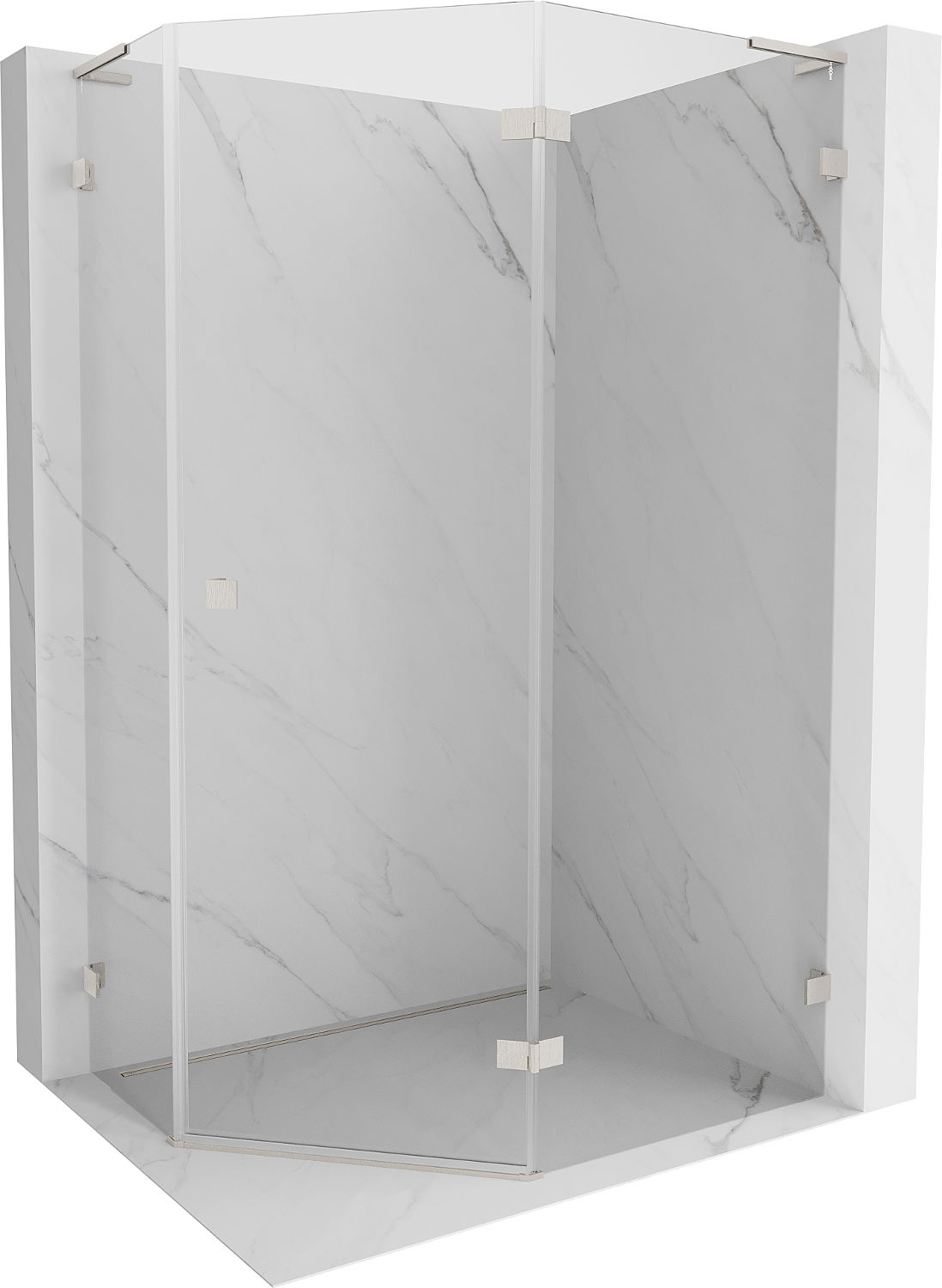 Mexen Lunar L päťuholníková sprchová kabína s pravými kĺbmi 100x90 cm, transparentná, brúsený nikel