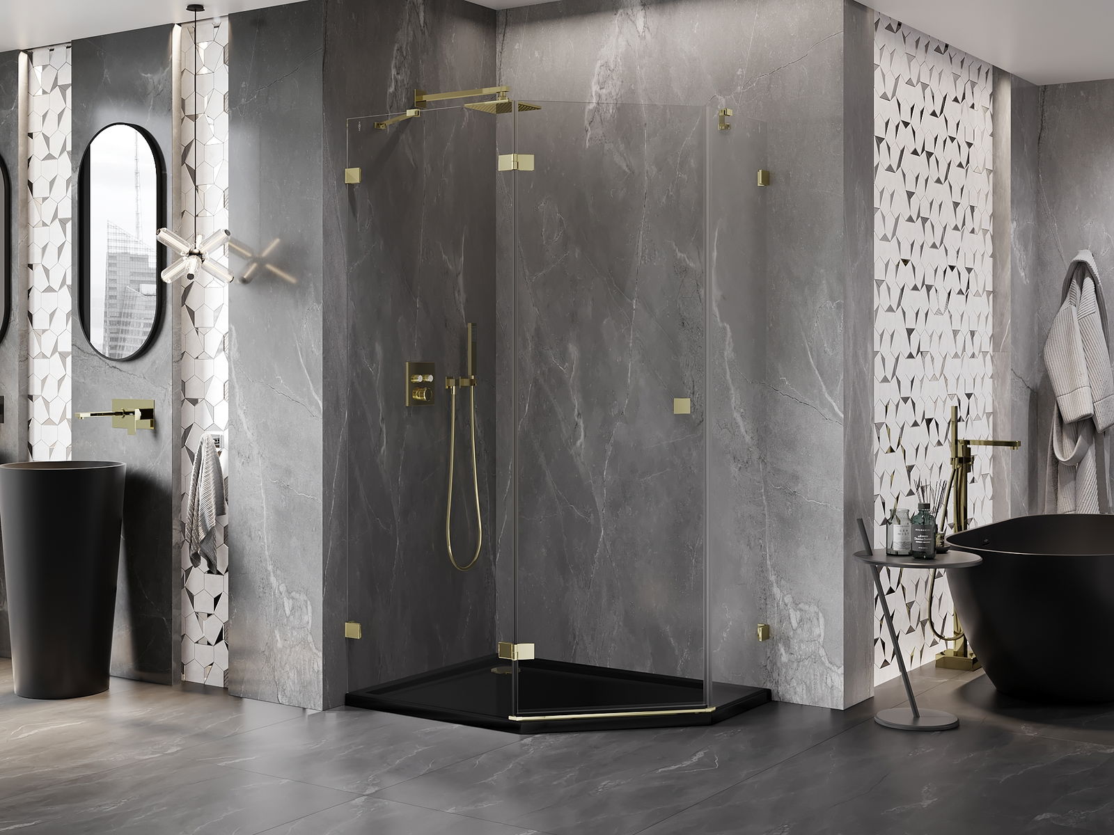 Mexen Lunar päťuholníková sprchová kabína, otváracia ľavá 100 x 90 cm, transparentná, zlatá - 831-100L-090P-50-00-L
