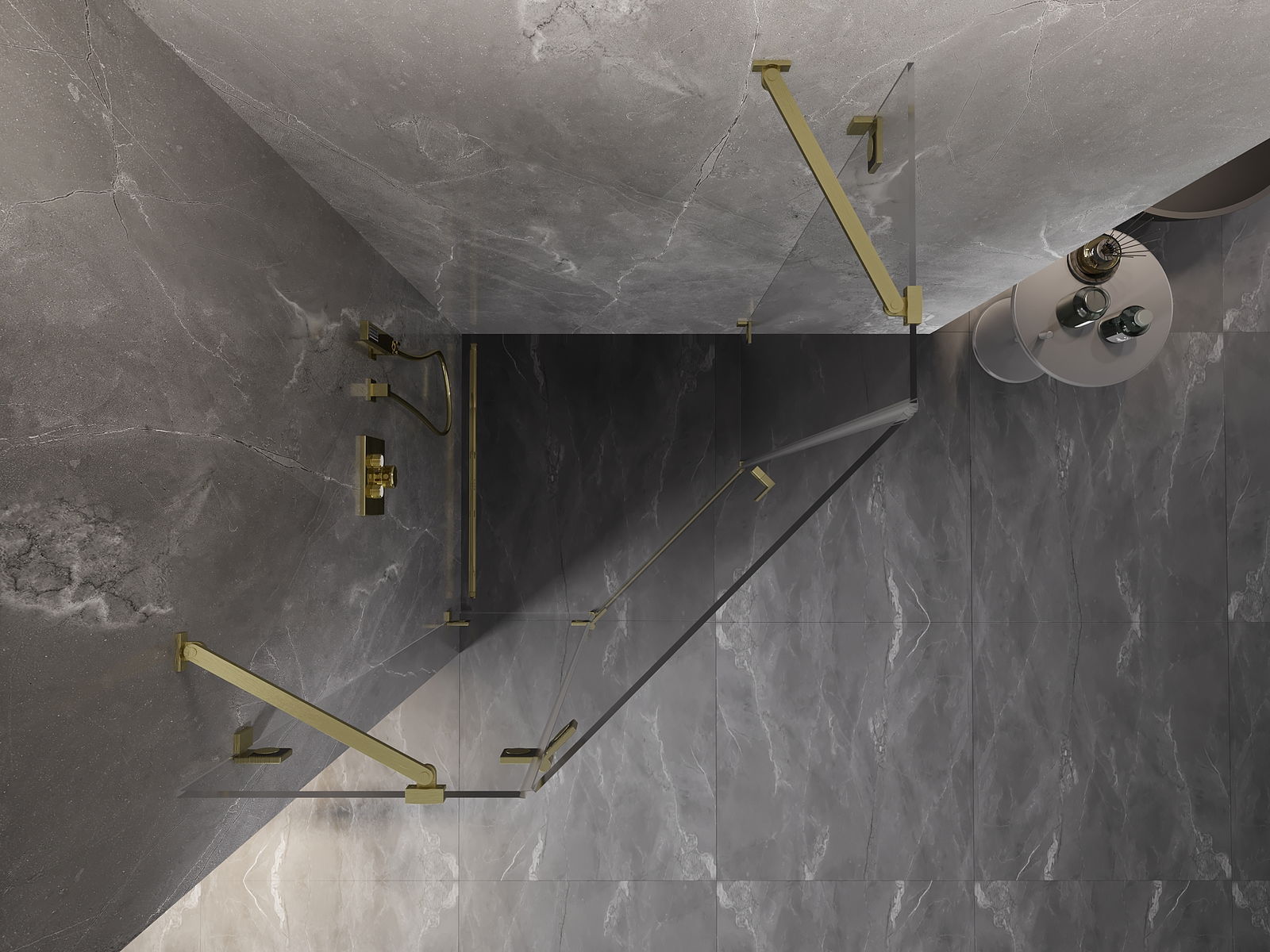 Mexen Lunar pentagonálny sprchovací kút sklopný ľavý 80 x 80 cm, transparentný, zlatý kartáčovaný - 831-080L-080P-55-00-L