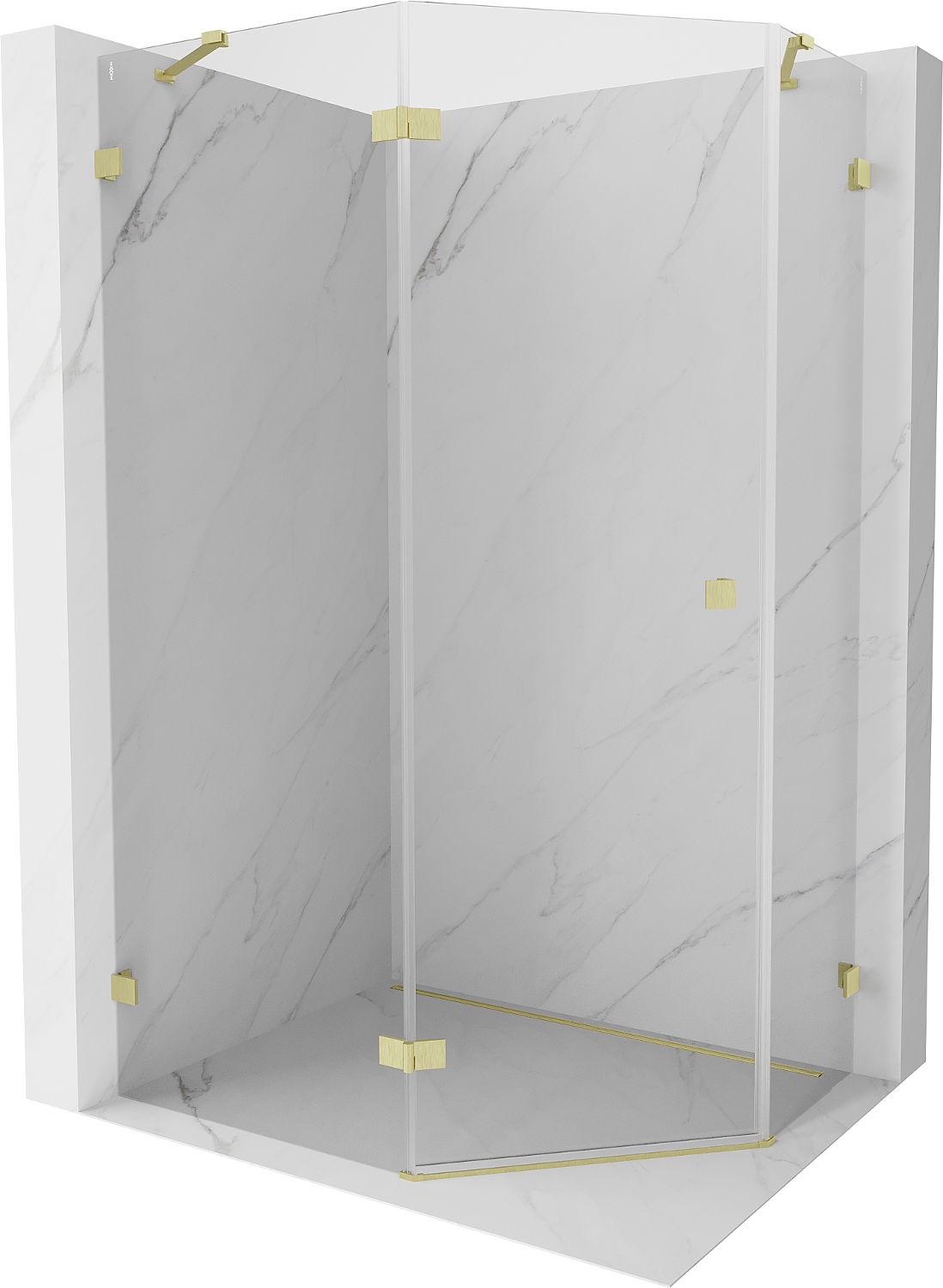 Mexen Lunar päťuholníková sprchová kabína skladacia ľavá 90 x 80 cm, transparentná, zlatá brúsená - 831-090L-080P-55-00-L