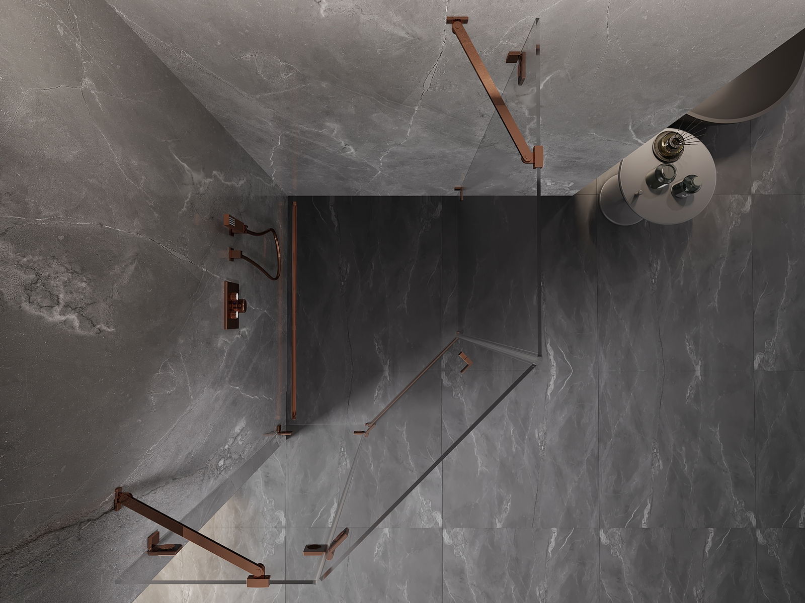 Mexen Lunar päťstranná sprchová kabína otváracia ľavá 80 x 90 cm, transparentná, ružové zlato - 831-080L-090P-60-00-L