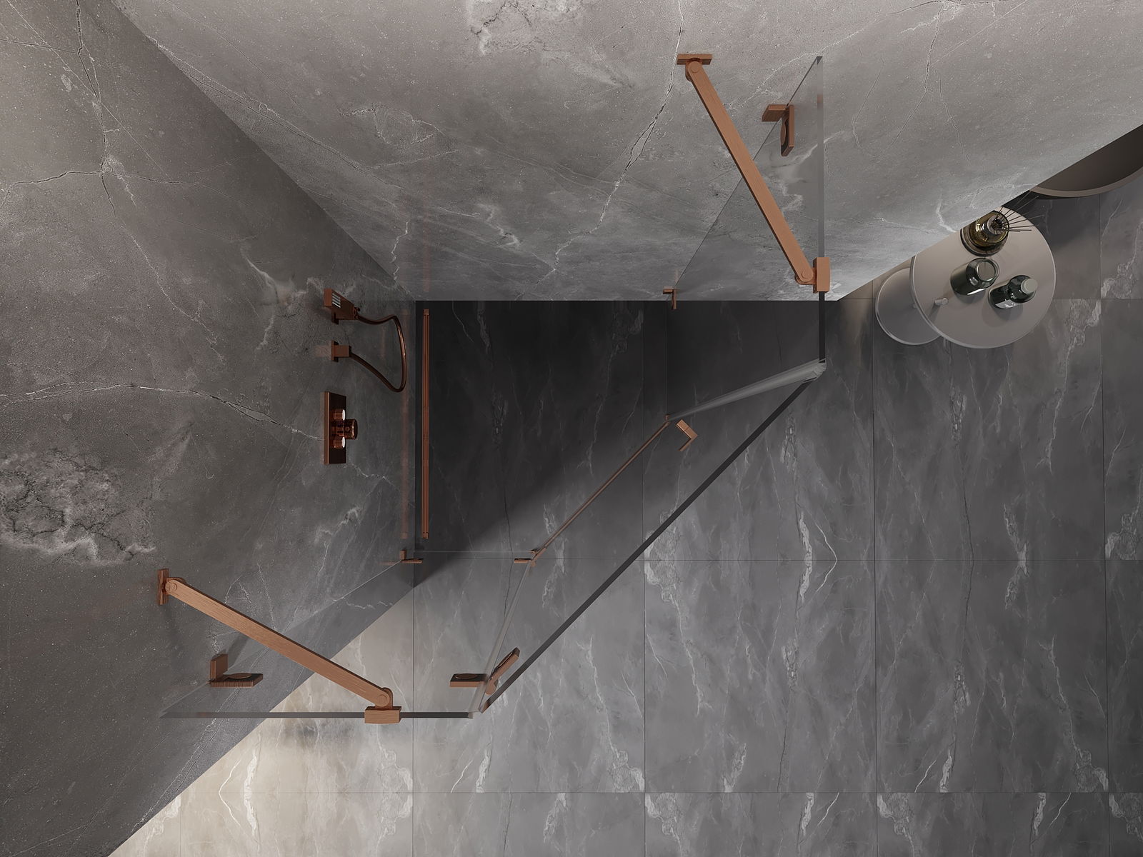 Mexen Lunar päťuholníková sprchová kabína výklopná ľavá 80 x 80 cm, transparentná, brúsená meď - 831-080L-080P-65-00-L