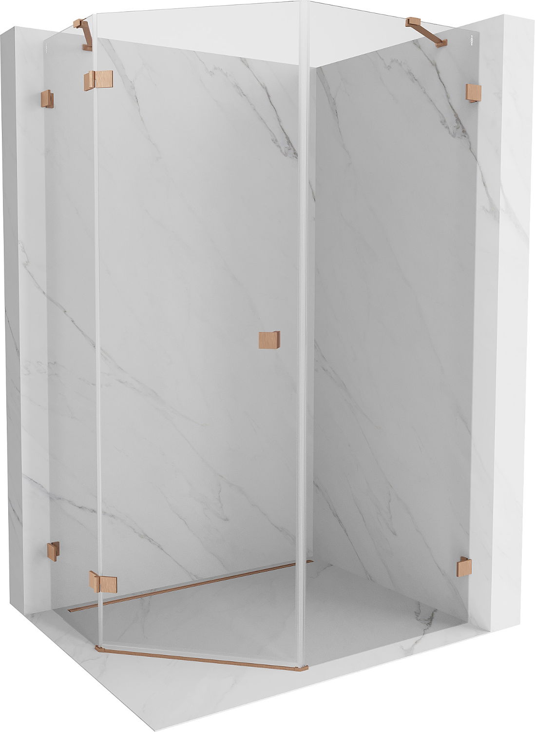 Mexen Lunar päťuholníková sprchová kabína s dvierkami ľavá 80 x 100 cm, transparentná, brúsená meď - 831-080L-100P-65-00-L