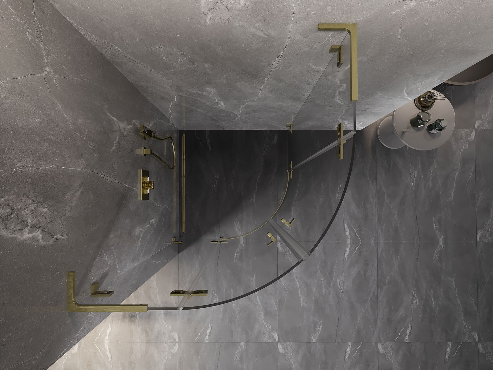 Mexen Lunar L polkruhová výklopná sprchová kabína 80 x 80 cm, transparentná, zlatá brúsená - 833L-080L-080P-55-00