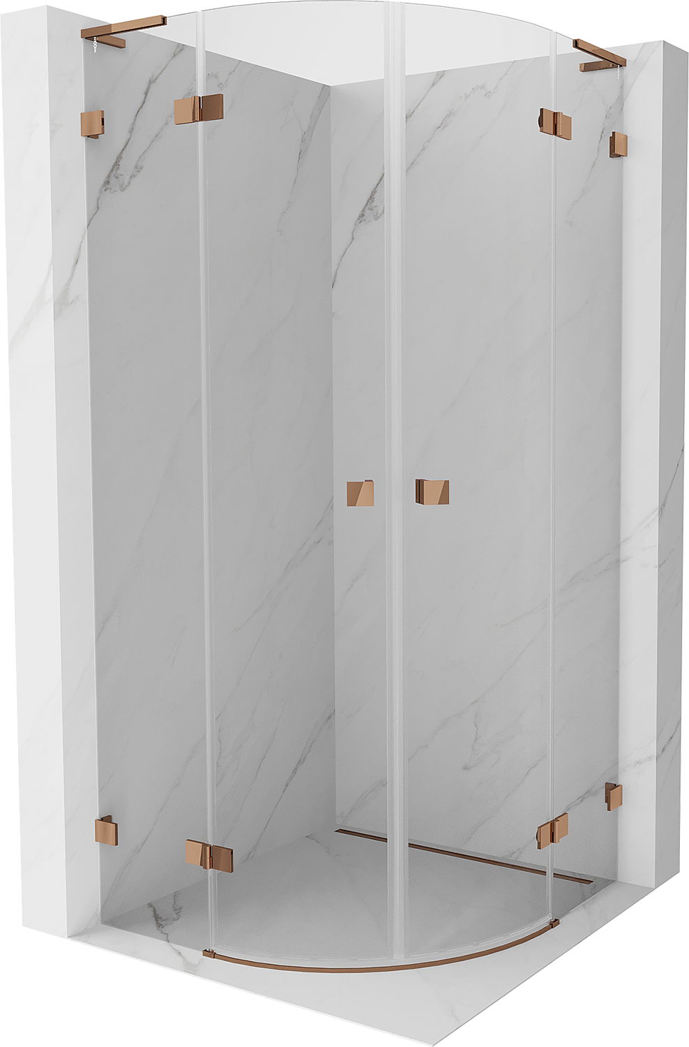 Mexen Lunar L polkruhový sprchovací kút s otváracími dverami 100 x 100 cm, transparentný, ružové zlato - 833L-100L-100P-60-00
