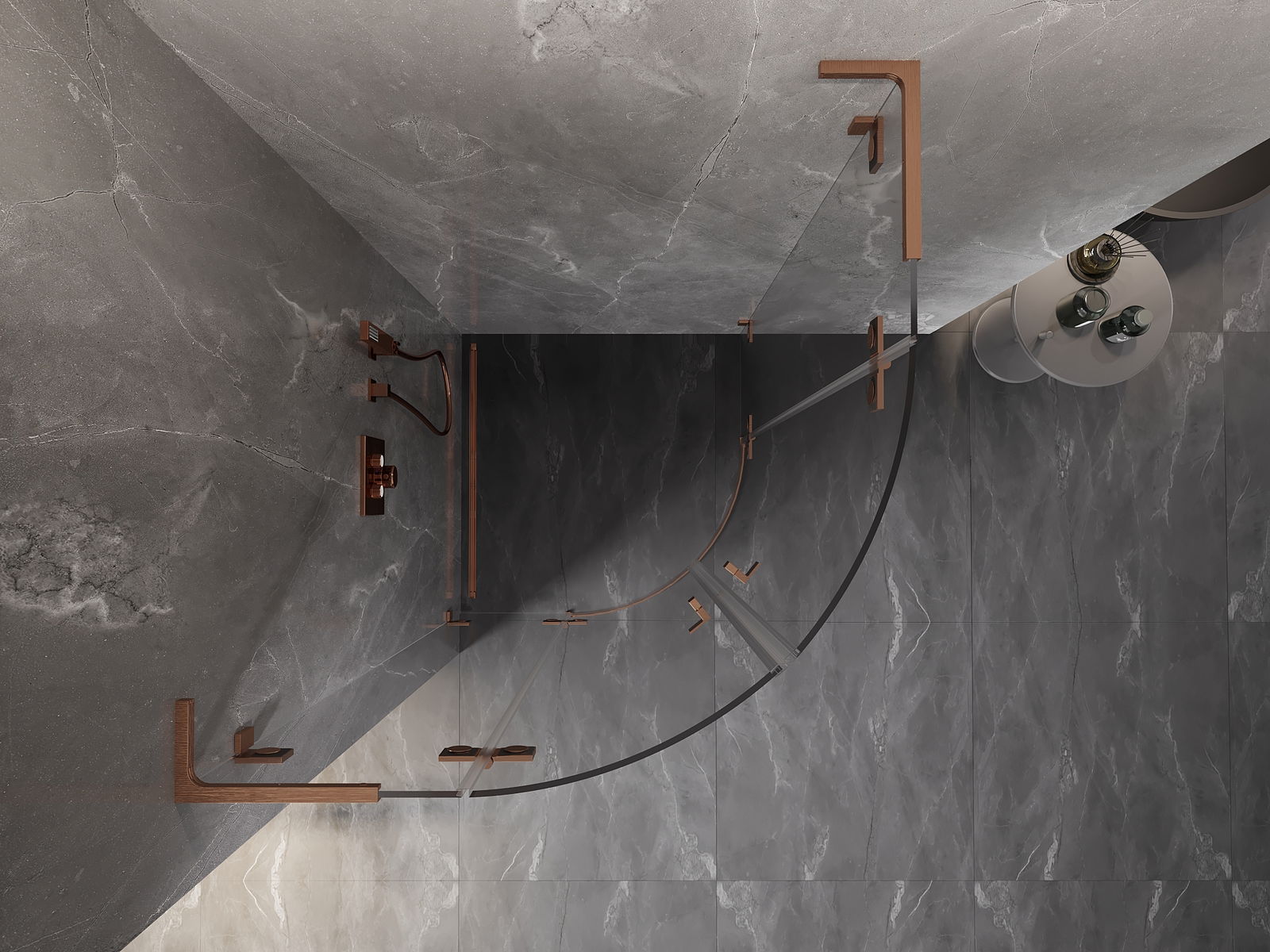 Mexen Lunar L polkruhová sprchová kabína s otváracími dverami 70 x 70 cm, priehľadná, brúsená meď - 833L-070L-070P-65-00