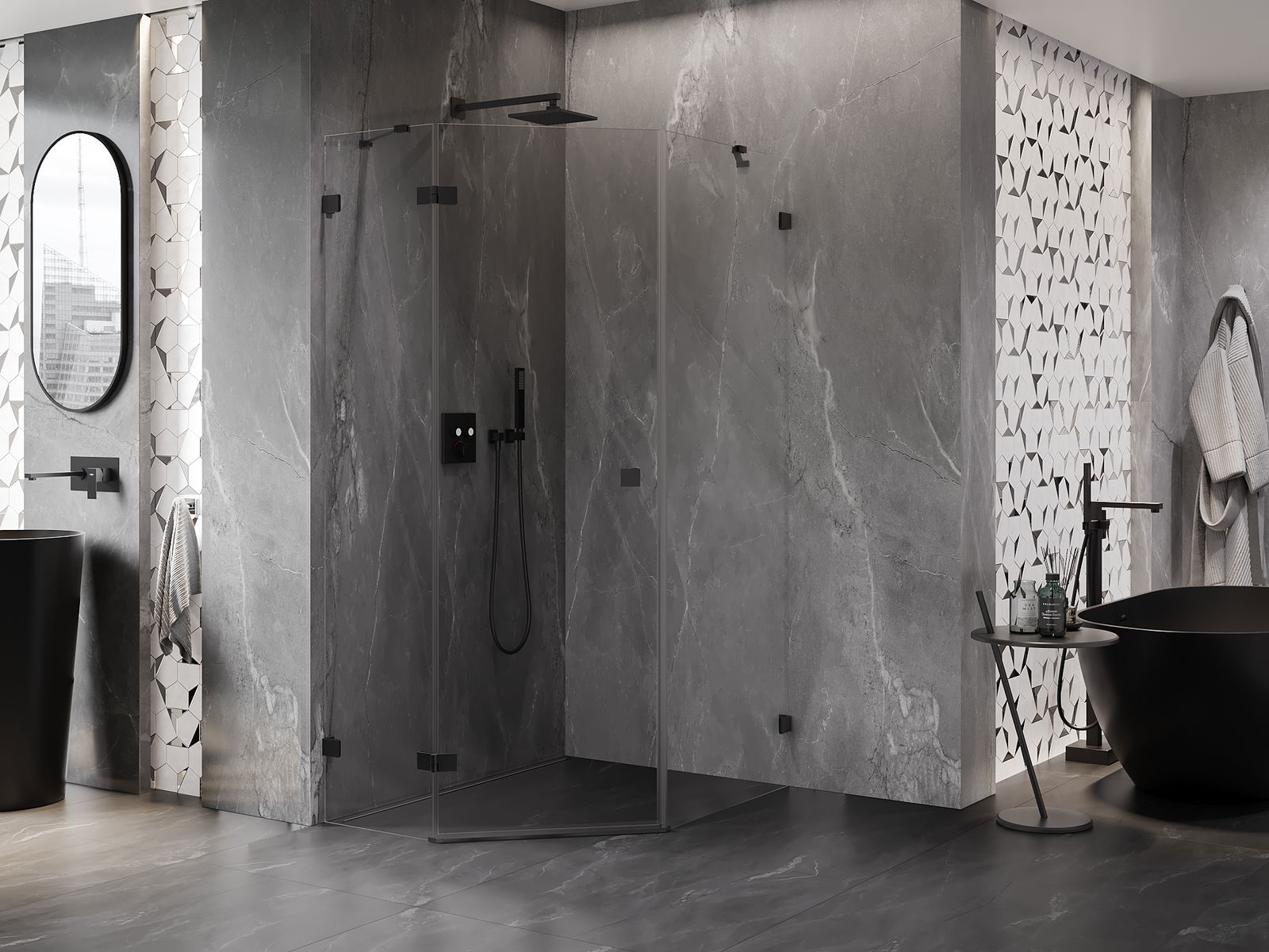 Mexen Lunar päťuholníková sprchová kabína s ľavými dverami 90 x 100 cm, transparentná, čierna - 831-090L-100P-70-00-L