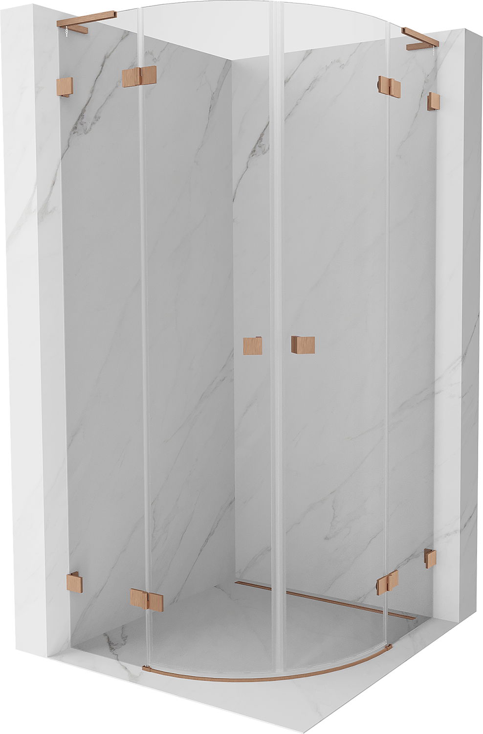 Mexen Lunar L sprchová kabína polkruhová otváracia 100 x 100 cm, transparentná, brúsená meď - 833L-100L-100P-65-00