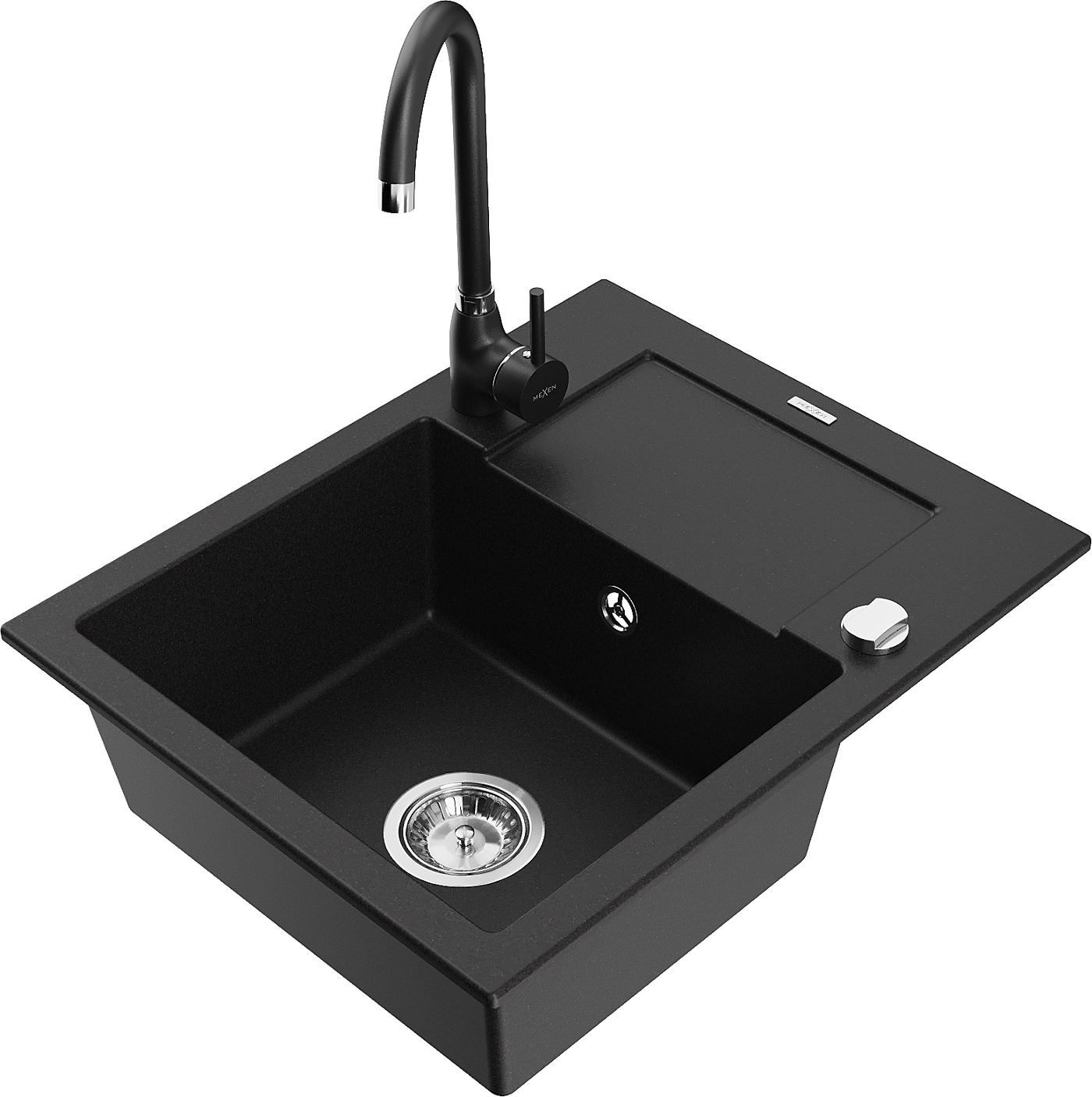 Mexen Enzo žulový drez s 1-komorou a odkvapkávačom a kuchynskou batériou Telma, čierny - 6506-77-670200-70