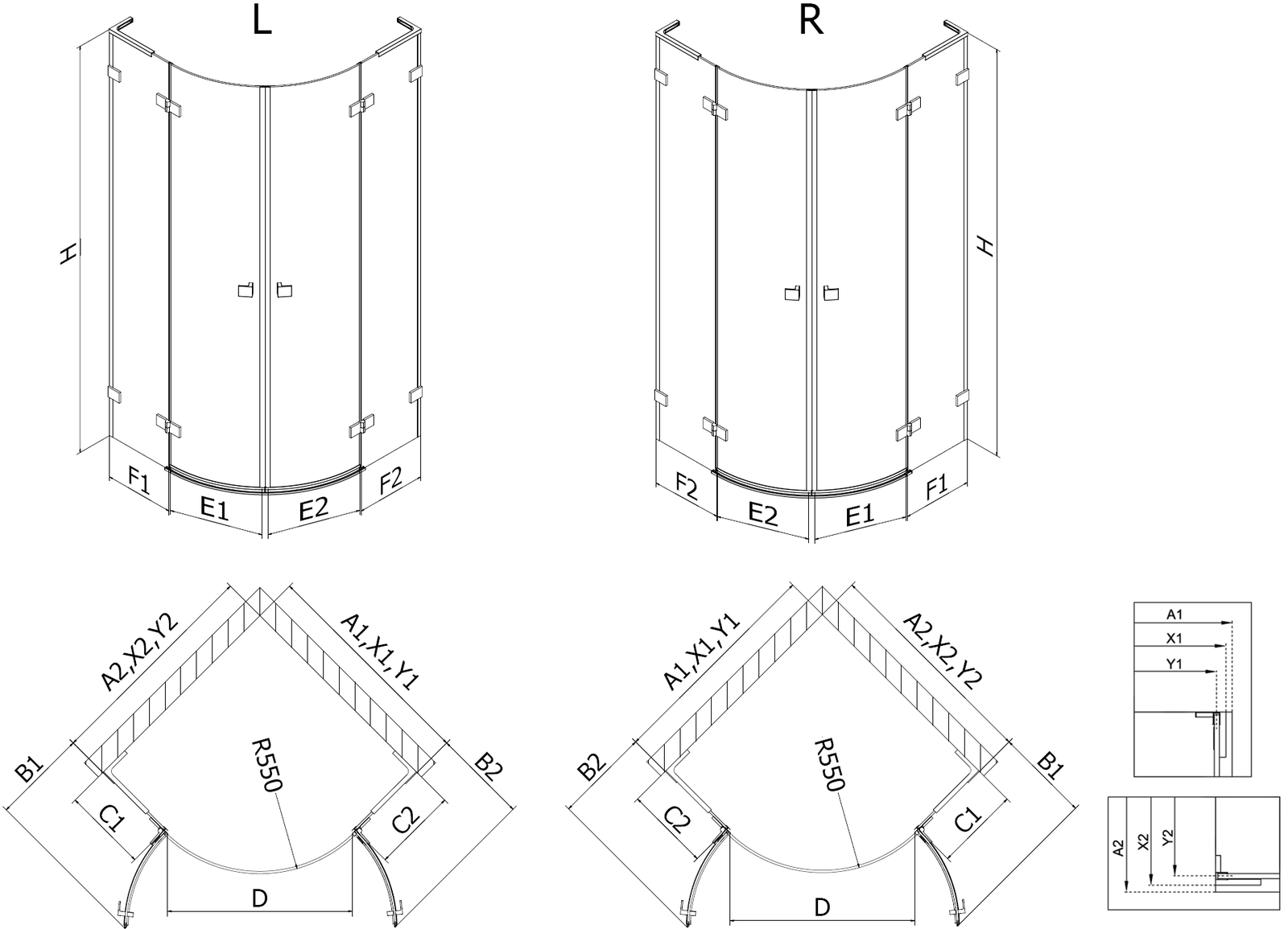 Otáčacie dvere umožňujú maximálnu voľnosť počas používania. Majú pevné pánty vyrobené z trvanlivého materiálu, ktoré sa ľahko udržiavajú čisté a umožňujú jednoduchý prístup do vnútra kabíny.