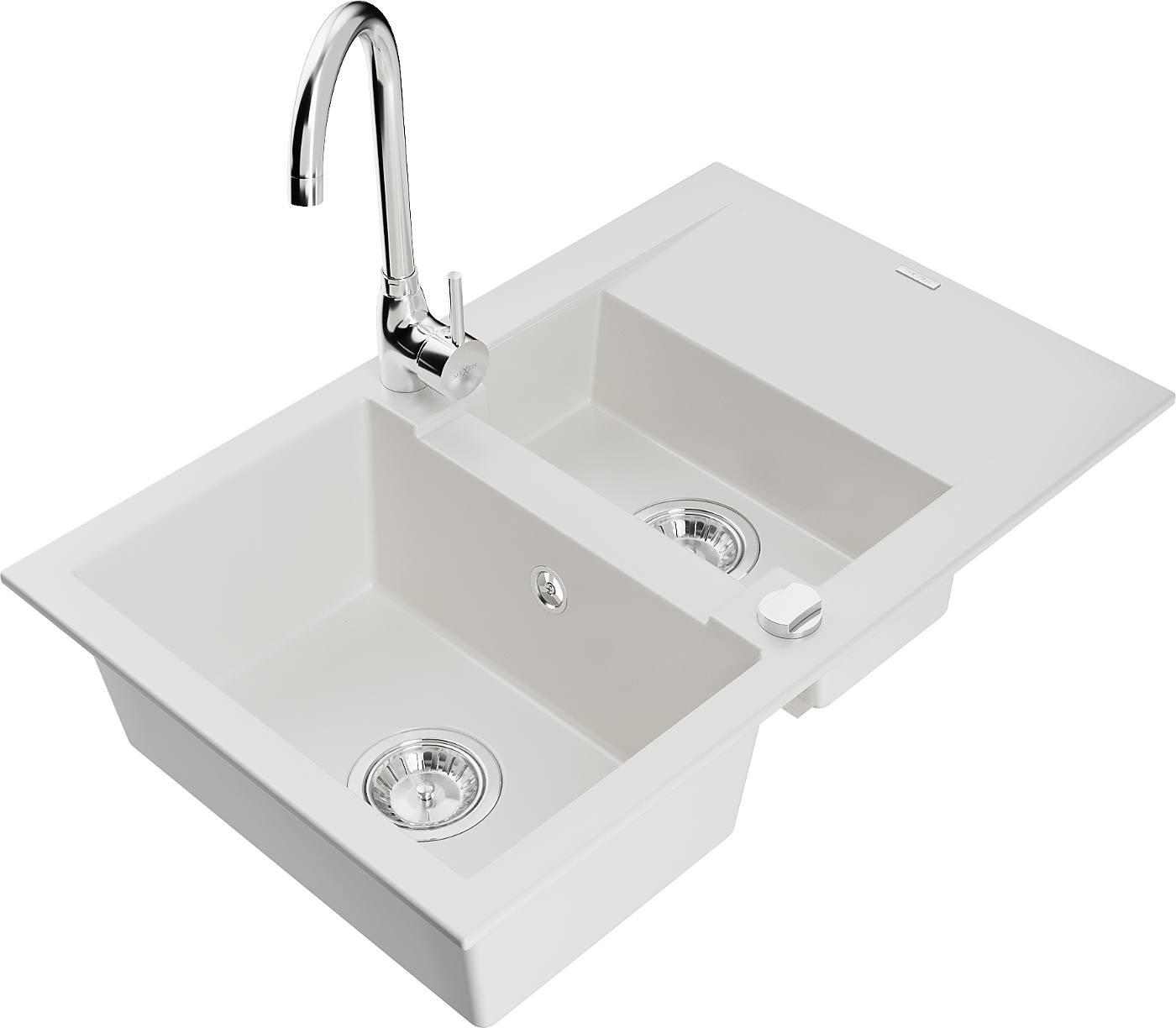 Mexen Gaspar granitový drez 1,5-komorový s odkvapkávačom a kuchynskou batériou Telma, biely - 6507-20-670200-00