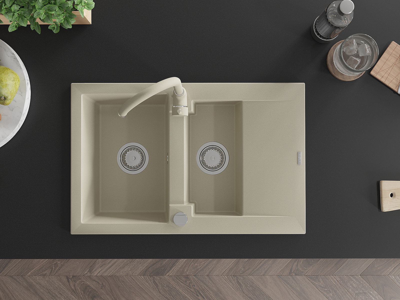 Mexen Gaspar granitový drez 1,5-komorový s odkvapkávačom a kuchynskou batériou Telma, béžový - 6507-69-670200-69