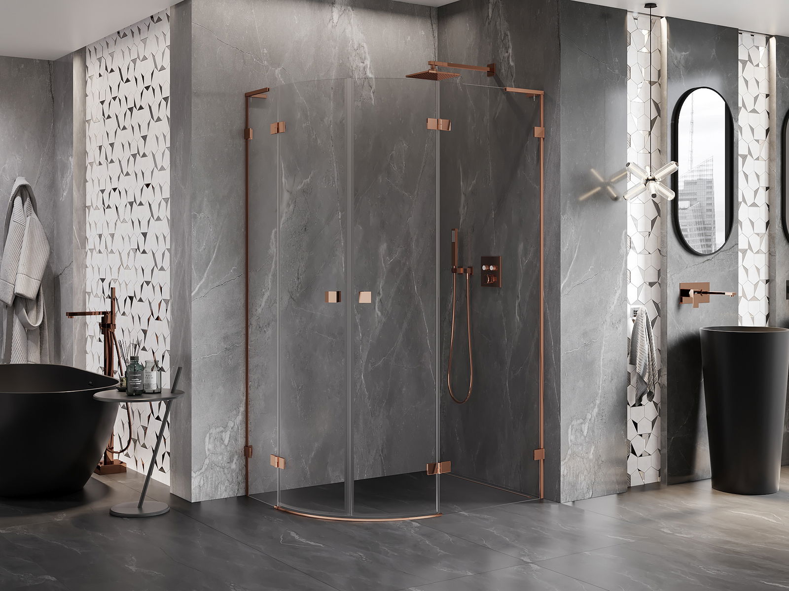 Mexen Lunar L polkruhová sprchová kabína pravá 80 x 70 cm, priehľadná, ružové zlato - 833L-080P-070L-60-00