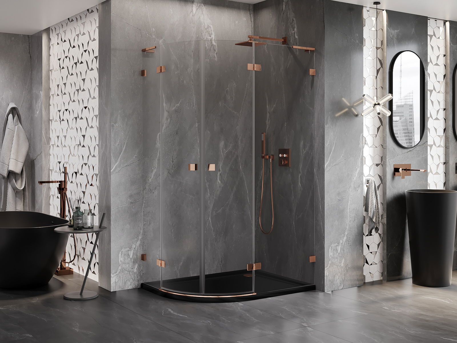 Mexen Lunar L sprchový kút polkruhový otočný pravý 100 x 90 cm, transparentný, ružové zlato - 833L-100P-090L-60-00