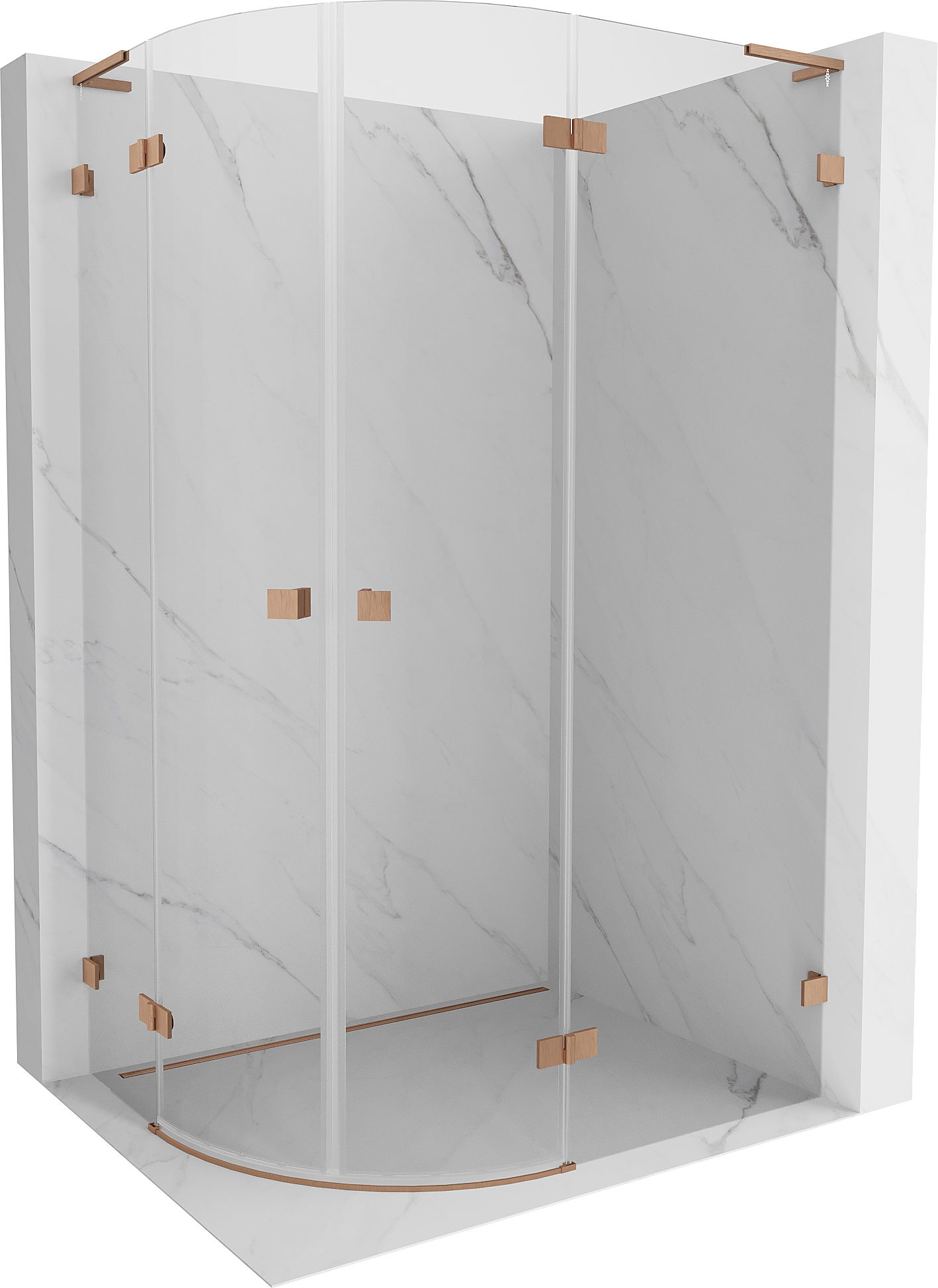 Mexen Lunar L polokruhová sprchová kabína výklopná pravá 100 x 70 cm, transparentná, brúsená meď - 833L-100P-070L-65-00