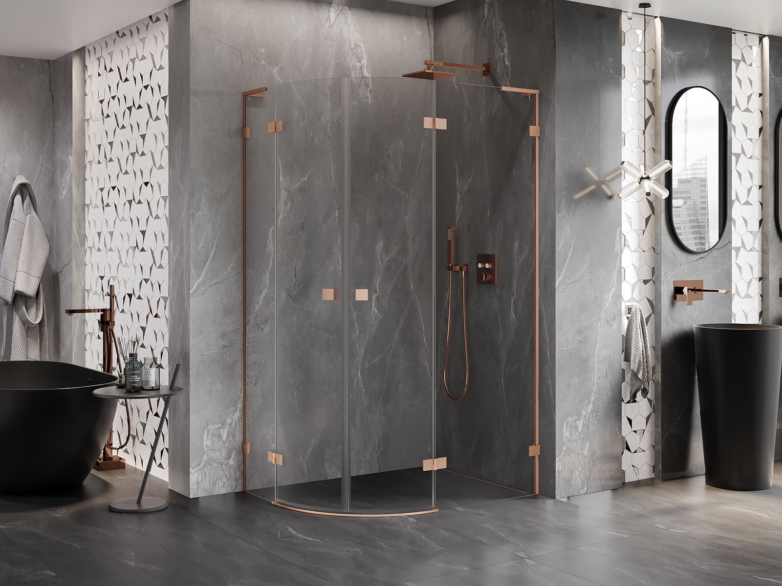 Mexen Lunar L polkruhová sprchová kabína pravá 100 x 80 cm, transparentná, brúsená meď - 833L-100P-080L-65-00