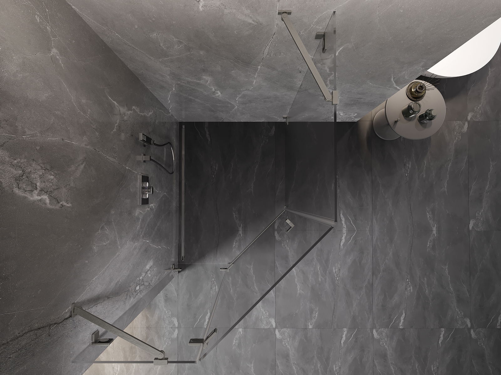 Mexen Lunar päťuholníková sprchová kabína výklopná ľavá 90 x 100 cm, transparentná, brúsený nikel - 831-090L-100P-97-00-L
