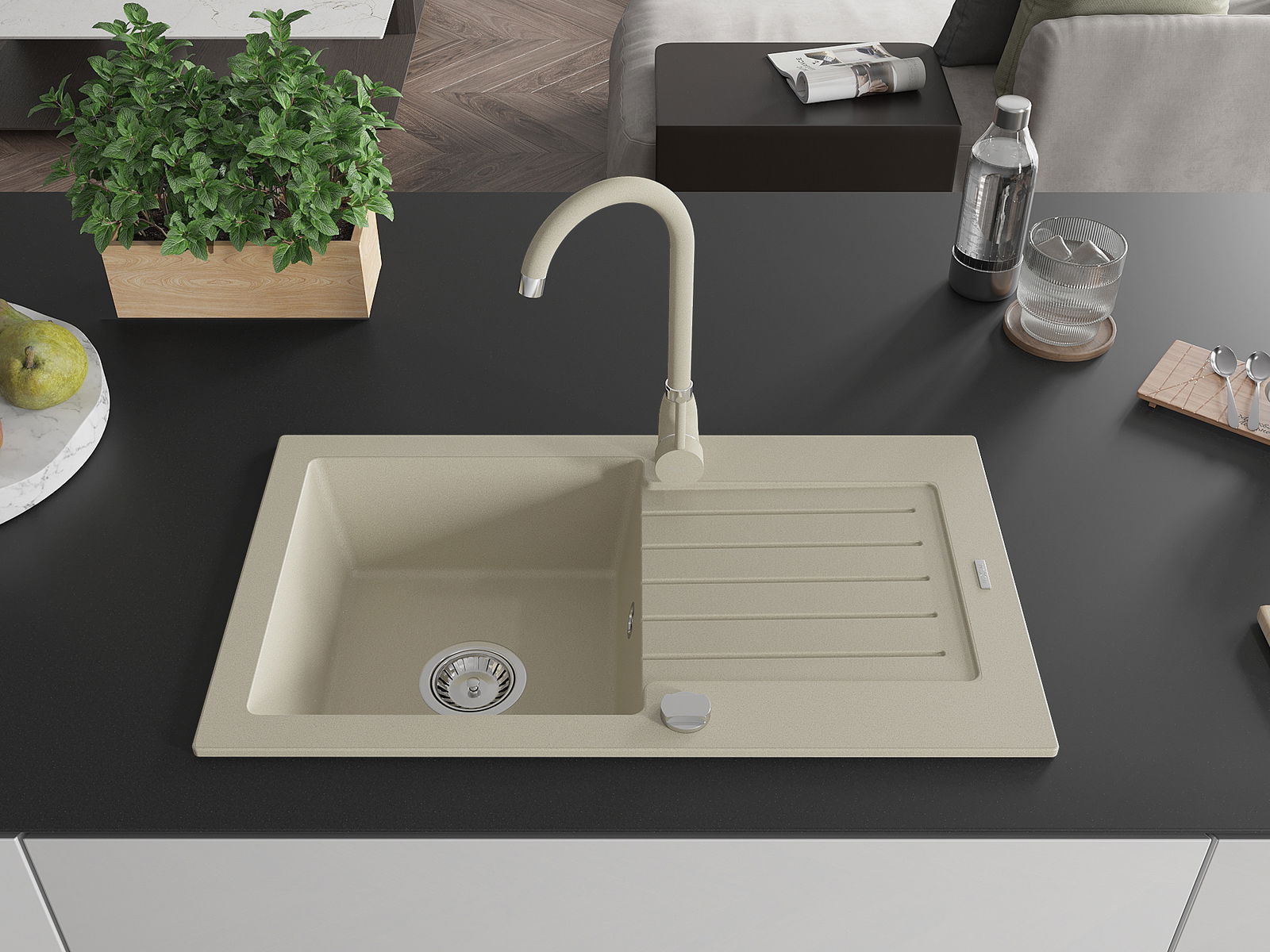 Mexen Pablo granitový drez s 1 priehradkou a odkvapkávačom a kuchynskou batériou Telma, béžový - 6510-69-670200-69
