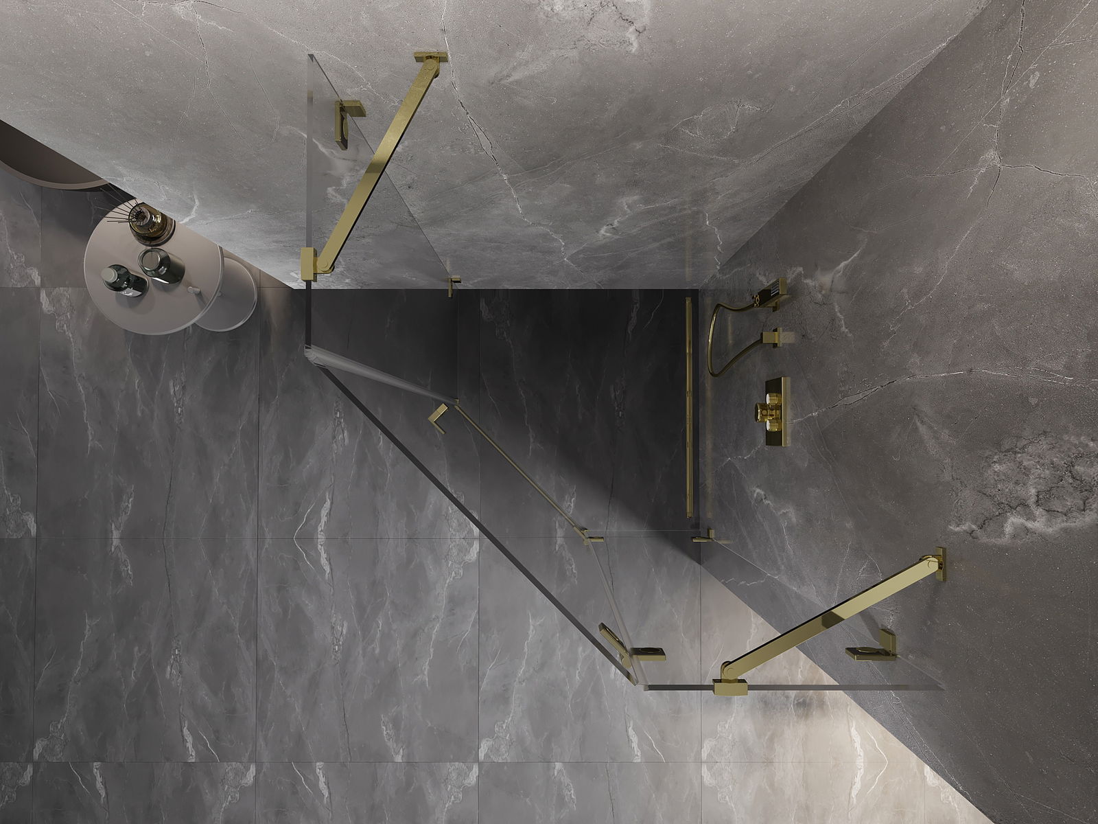 Mexen Lunar päťuholníková sprchová kabína výklopná pravá 80 x 80 cm, transparentná, zlatá - 831-080P-080L-50-00-P