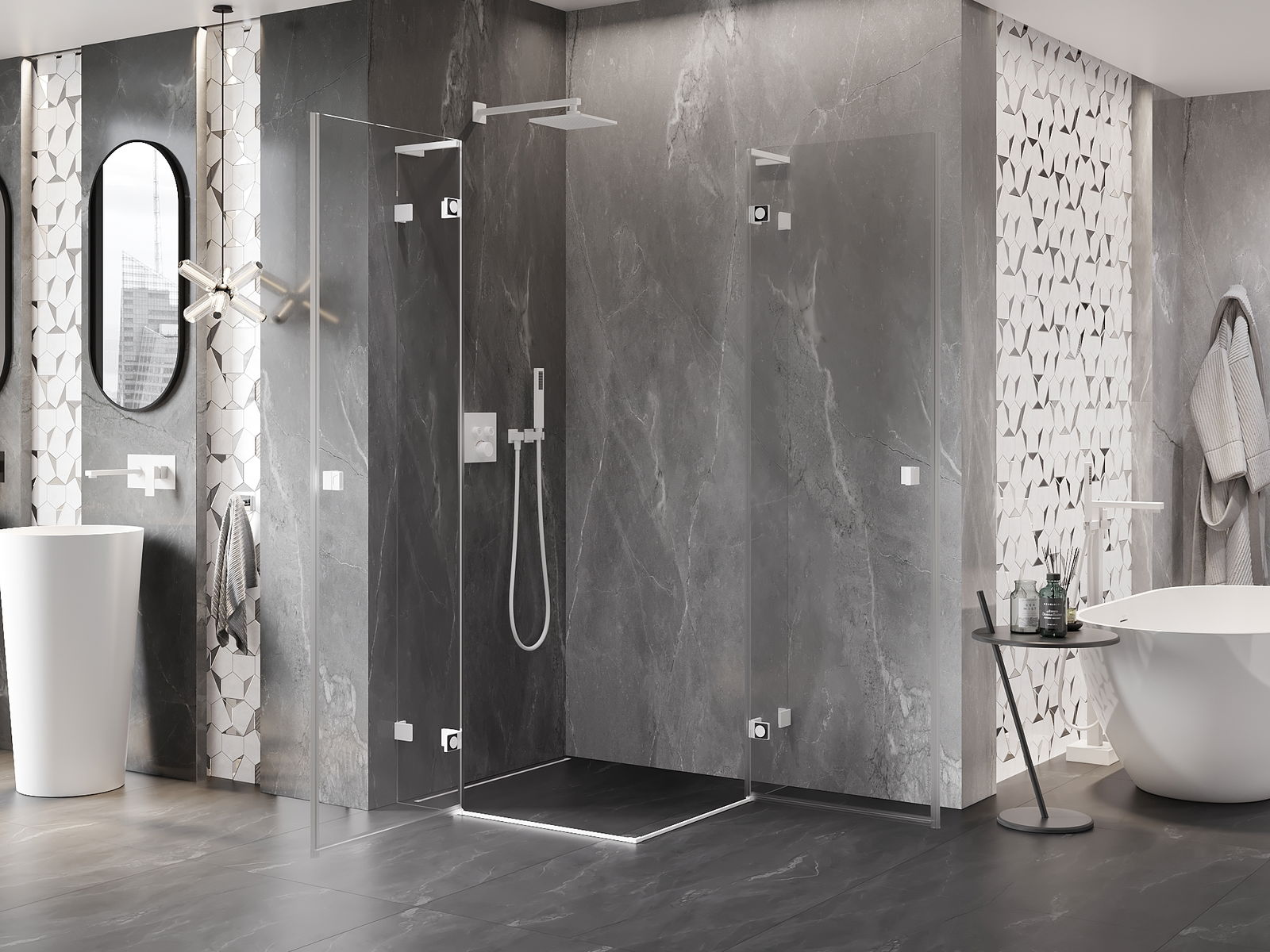 Svorky a závesy boli vyrobené z veľmi odolnej mosadze a navyše vytvárajú zarovnanú tabuľu skla. Je to vynikajúci výber, ktorý spája eleganciu, trvanlivosť a moderný dizajn. Vďaka takýmto riešeniam sprcha získa na estetike a zároveň uľahčujú udržiavanie čistoty.