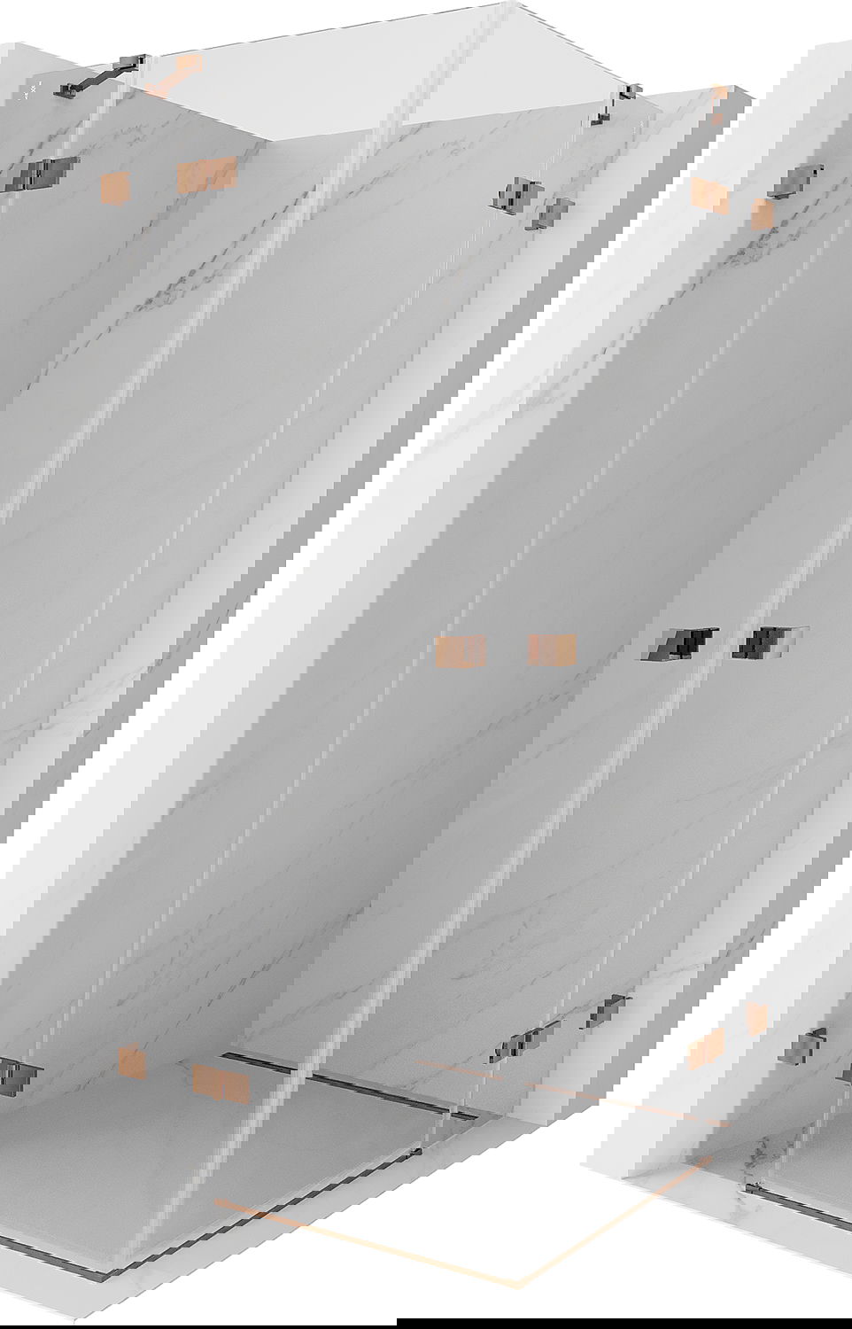 Svorky a závesy boli vyrobené z veľmi odolnej mosadze a navyše vytvárajú zarovnanú tabuľu skla. Je to vynikajúci výber, ktorý spája eleganciu, trvanlivosť a moderný dizajn. Vďaka takýmto riešeniam sprcha získa na estetike a zároveň uľahčujú udržiavanie čistoty.