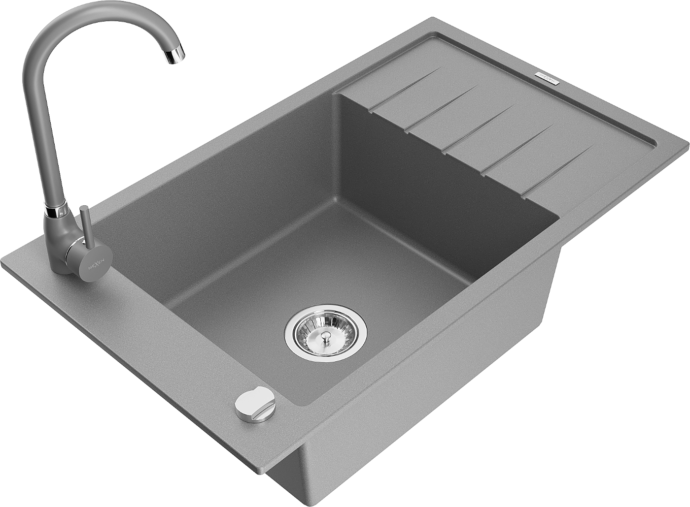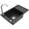 Mexen Elias žulový drezy 1-komorový s odkvapkávačom a kuchynská batéria Telma, šedá - 6511-71-670200-71