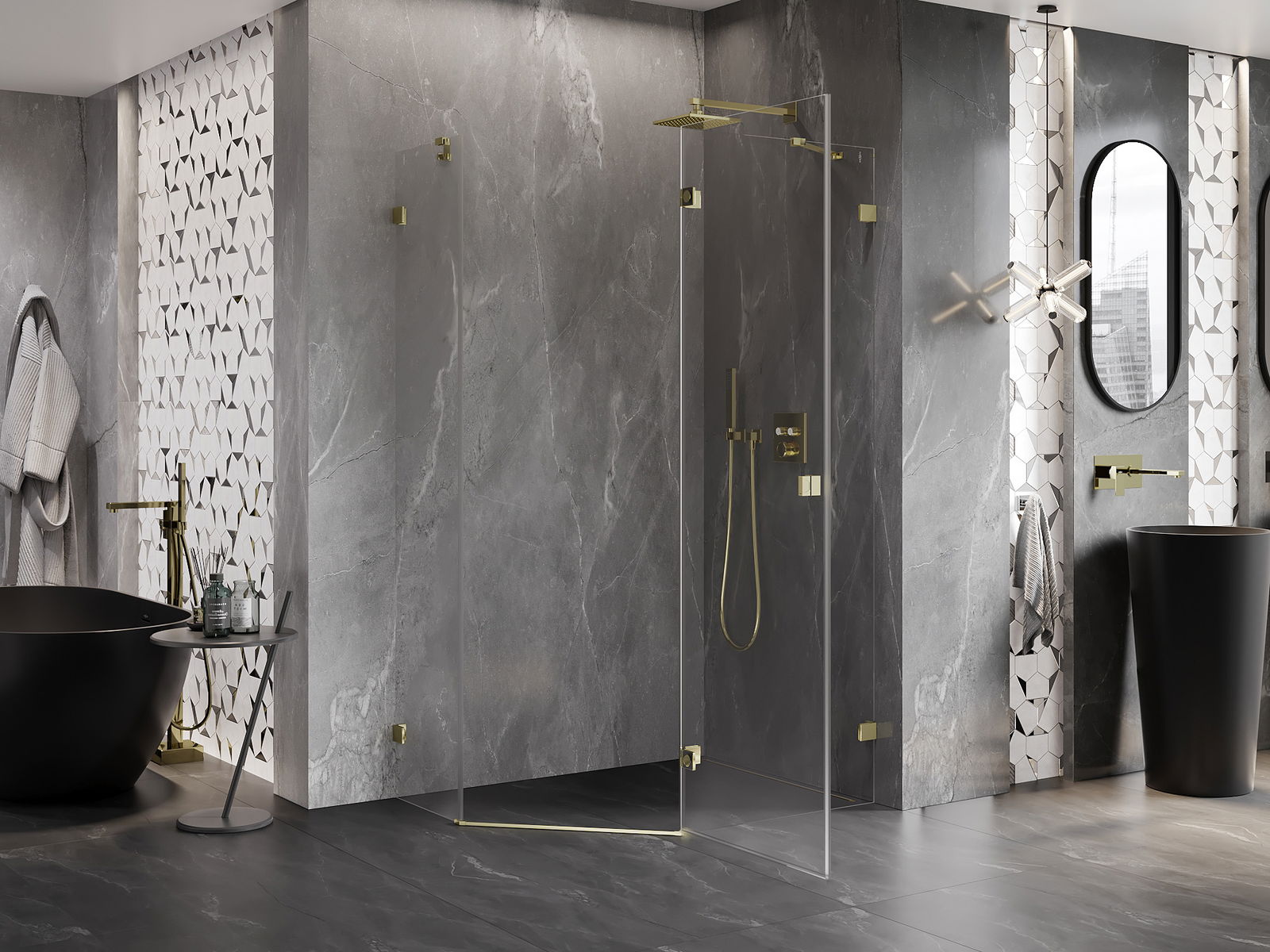 Svorky a závesy boli vyrobené z veľmi odolnej mosadze a navyše vytvárajú zarovnanú tabuľu skla. Je to vynikajúci výber, ktorý spája eleganciu, trvanlivosť a moderný dizajn. Vďaka takýmto riešeniam sprcha získa na estetike a zároveň uľahčujú udržiavanie čistoty.