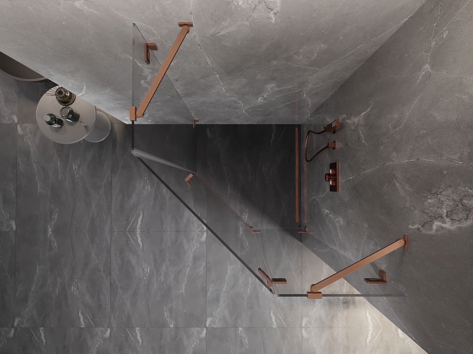 Mexen Lunar päťuholníková sprchová kabína pravá 80 x 80 cm, transparentná, brúsená meď - 831-080P-080L-65-00-P