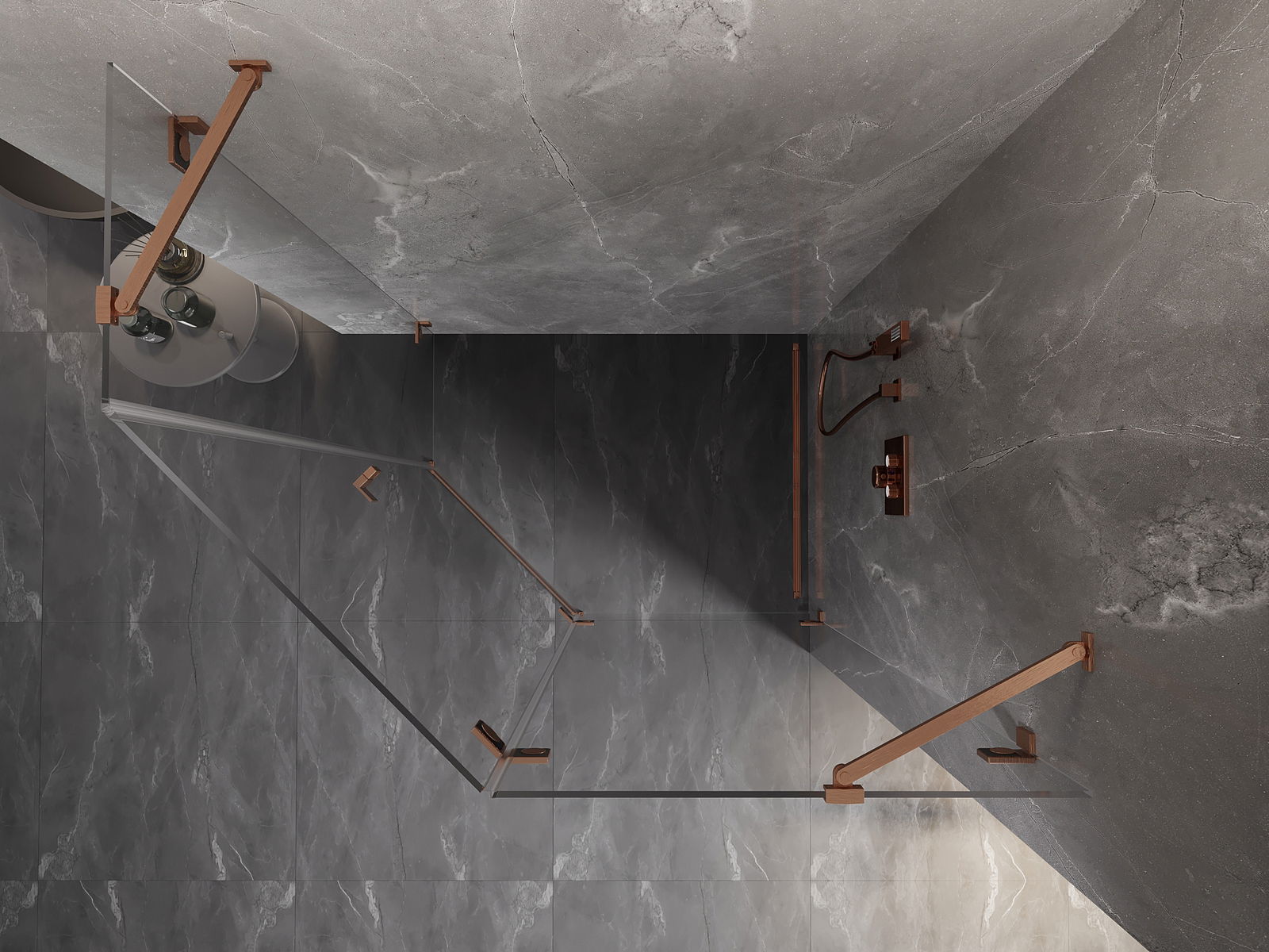 Mexen Lunar pentagonálna sprchová kabína otváracia pravá 100 x 80 cm, transparentná, kartáčovaná meď - 831-100P-080L-65-00-P