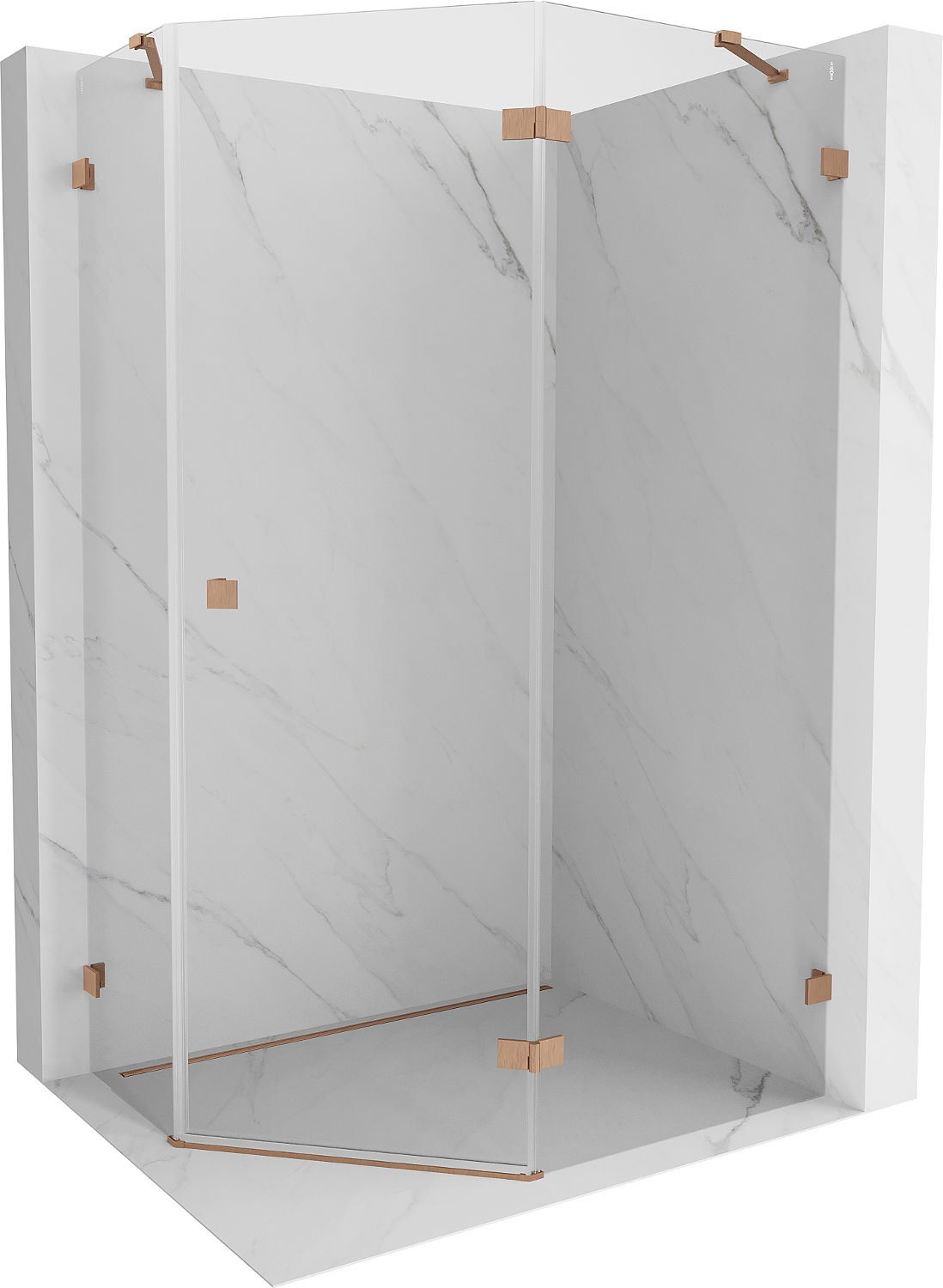 Mexen Lunar päťuholníkový sprchovací kút pravý 100 x 90 cm, transparentný, brúsená meď - 831-100P-090L-65-00-P