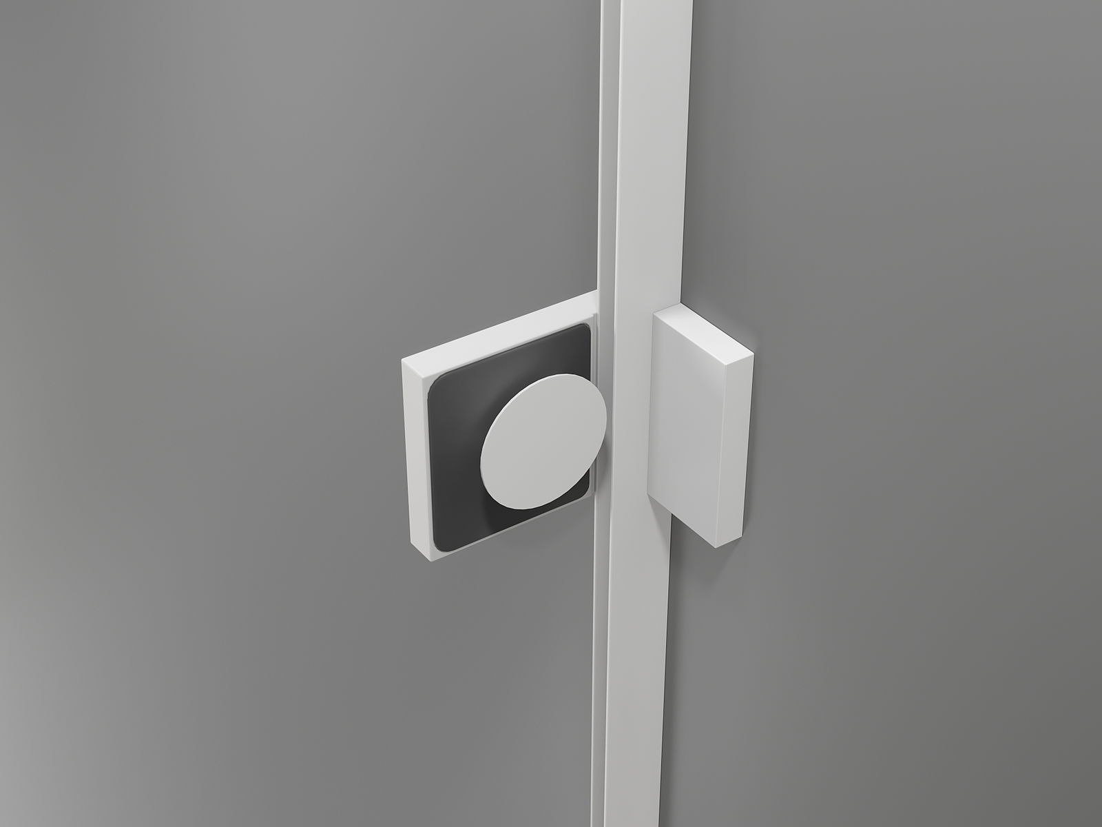 Praktická a pohodlná rukoväť je vyrobená z odolného a pevného kovu. Moderný tvar v kombinácii s povrchovou úpravou prispôsobenou farbe profilov dodáva celku moderný a štýlový vzhľad, zdôrazňujúc estetiku každej kúpeľne.
