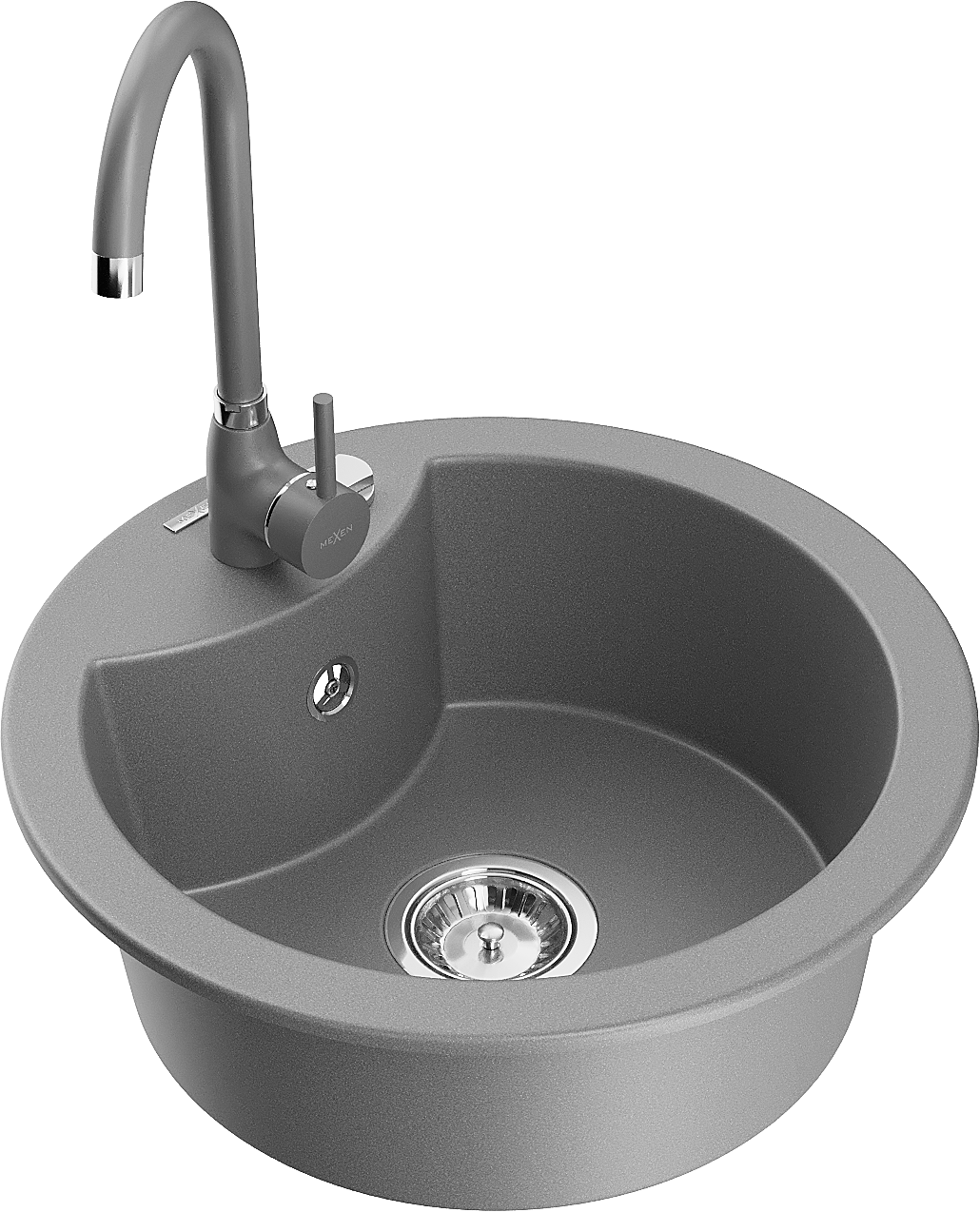 Mexen Diego granitový drez 1-komorový s kuchynskou batériou Telma, šedá - 6512-71-670200-71