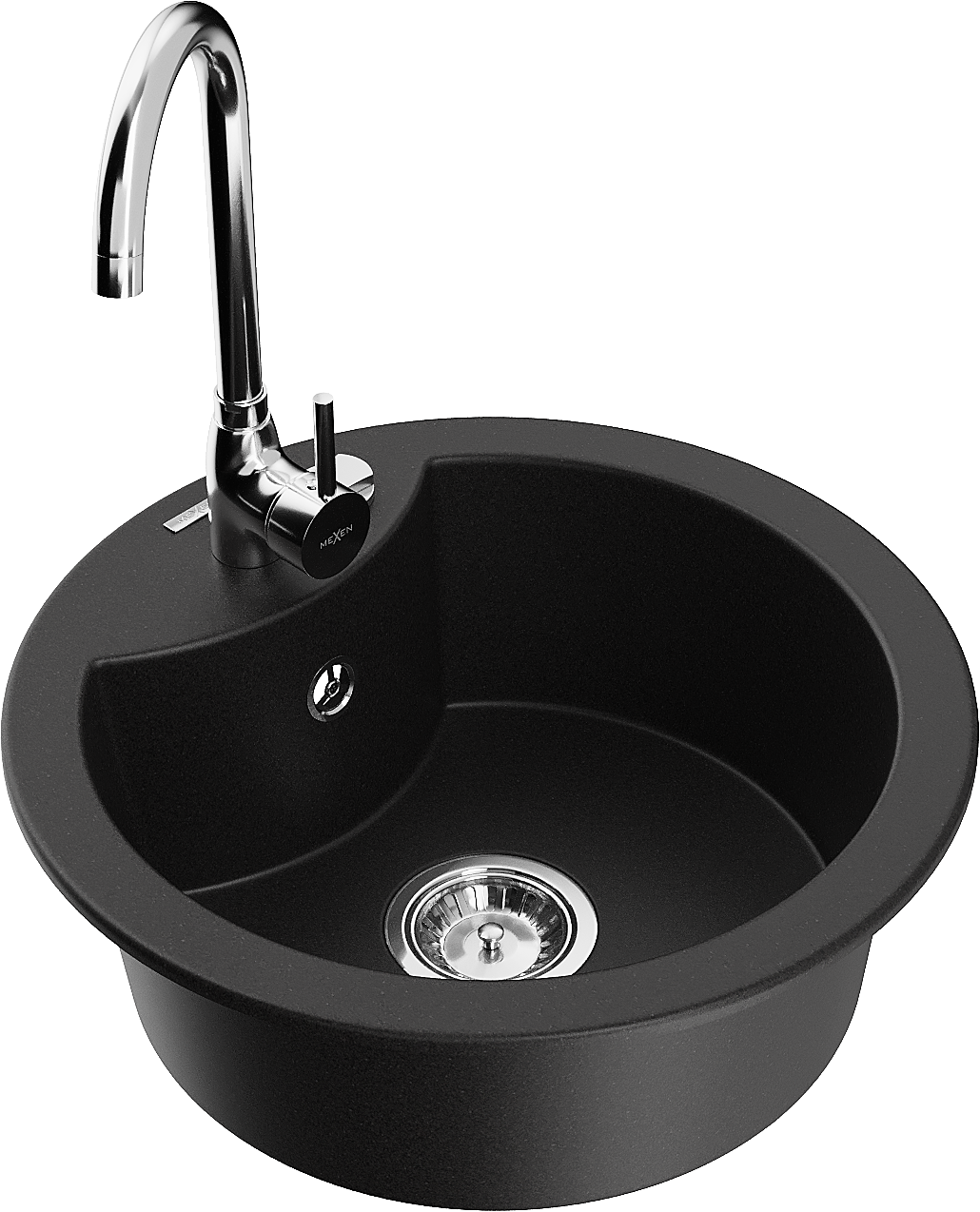 Mexen Diego granitový drez 1-komorový s kuchynskou batériou Telma, čierny - 6512-77-670200-00