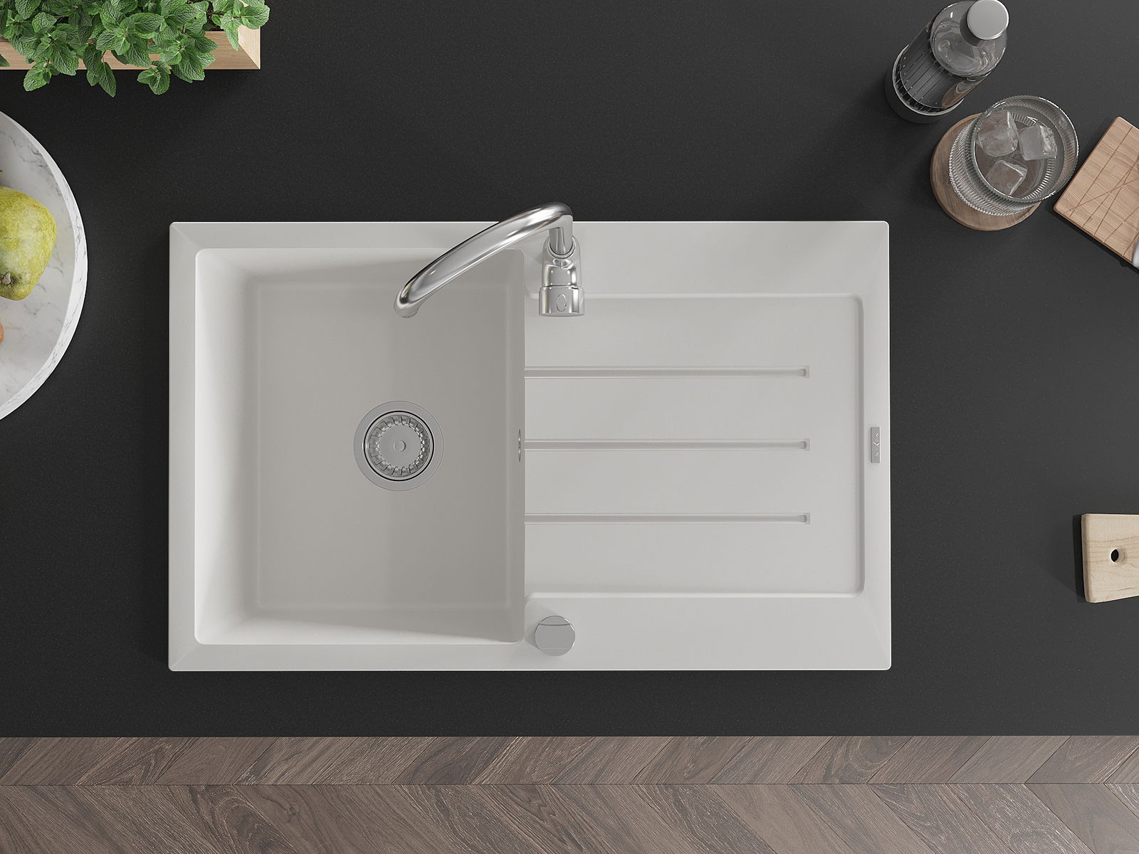 Povrch umývadla je odolný voči škvrnám a sfarbeniu, vďaka čomu sa ľahko čistí a zachováva si svoju farbu po dlhú dobu. Estetický a prakticky dopĺňajúci každú kuchyňu.