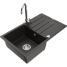 Mexen Bruno granitový drez 1-komorový s odkvapkávačom a kuchynskou batériou Telma, čierny/strieborný - 6513-73-670200-00
