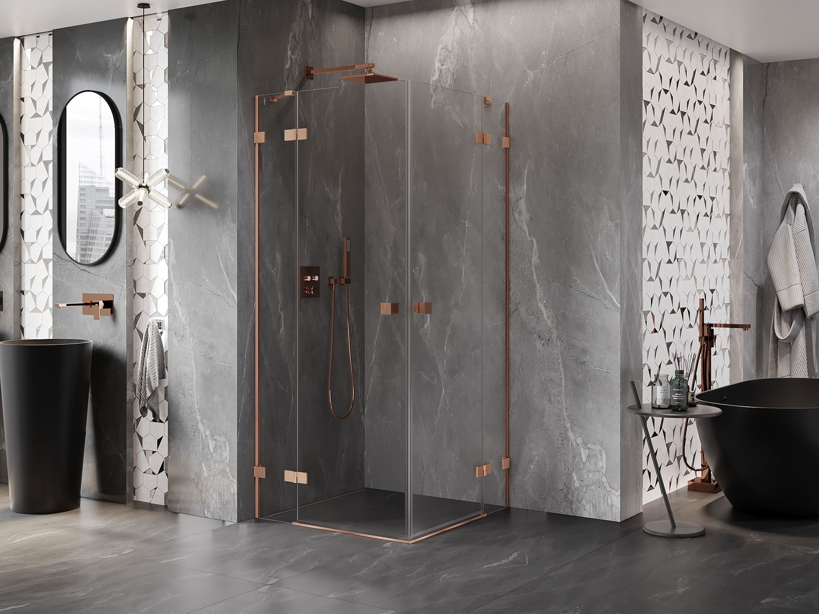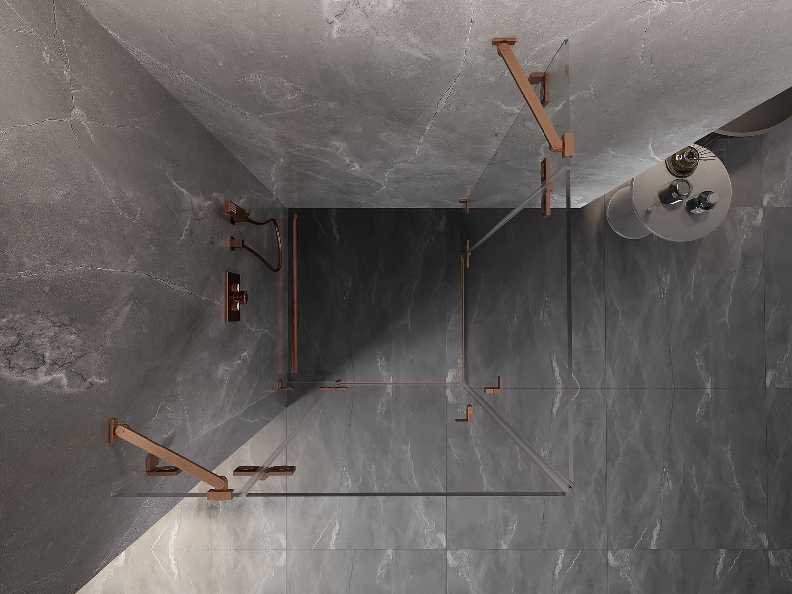 Mexen Lunar Duo sprchová kabína otváracia 105 x 105 cm, transparentná, brúsená meď - 834-105L-105P-65-00